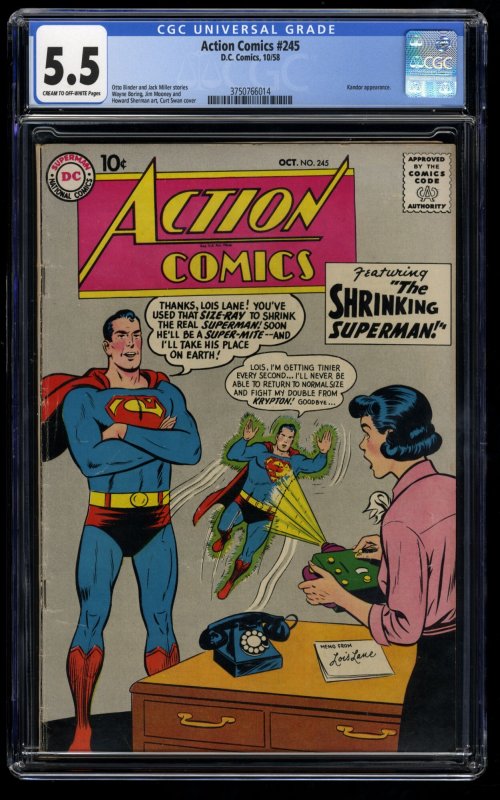 Action Comics #245 CGC FN- 5.5 Cream To Off White DC Comics DC Superman
