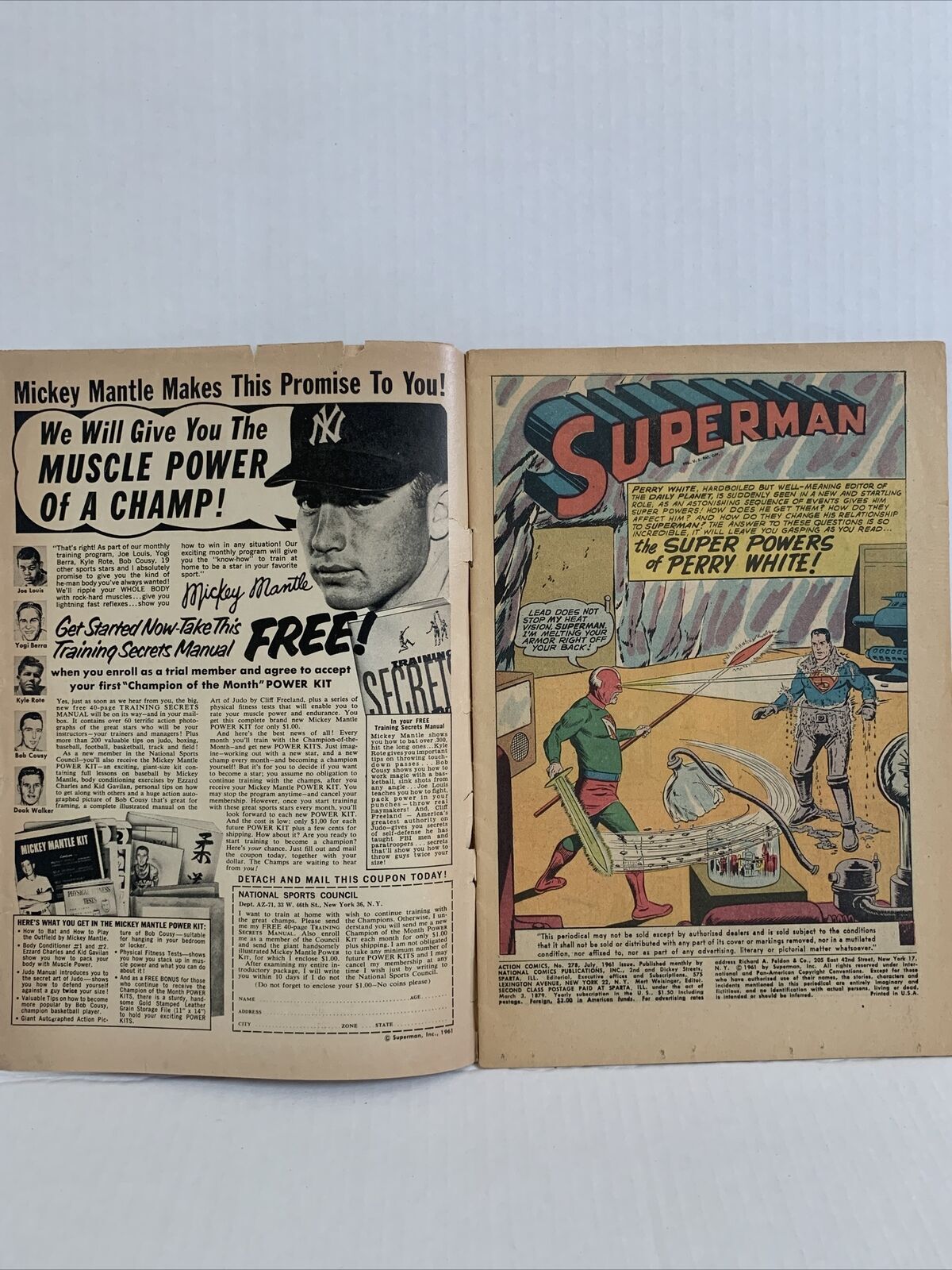 Action Comics #278 GOOD- Condition - multiple tears and beerly attached I Charge Base Sales Taxes for Ca Purchases Combined shipping for all raw books in the US. Check out my other Silver and Bronze age comics. Pl ... Read More
