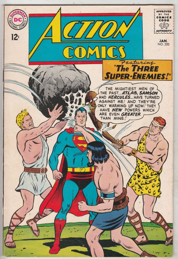Action Comics #320 - Featuring "The Three Super-Enemies!" APPEARANCE - Hercules, Samson and Atlas CONTENT - Supergirl back-up story. This book has excellent eye-appeal on this hard-to-get in high-grade white Atlas ... Read More
