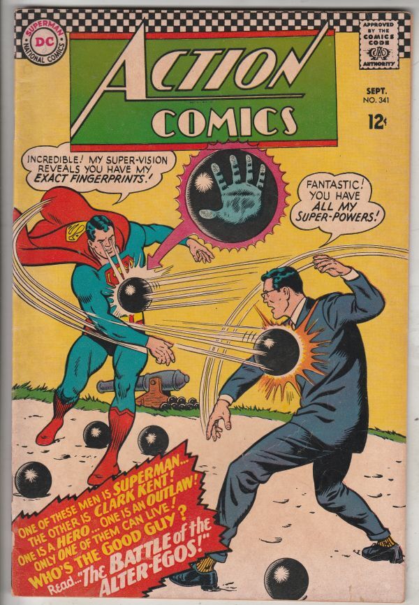 Action Comics #341 - "The Battle of the Alter-Egos!" APPEARANCE - Batman and Robin APPEARANCE - Lori Lemuris Wow! This book has nice eye-appeal and deep rich color on this all-time-classic Superman vs. Clark at Bo ... Read More