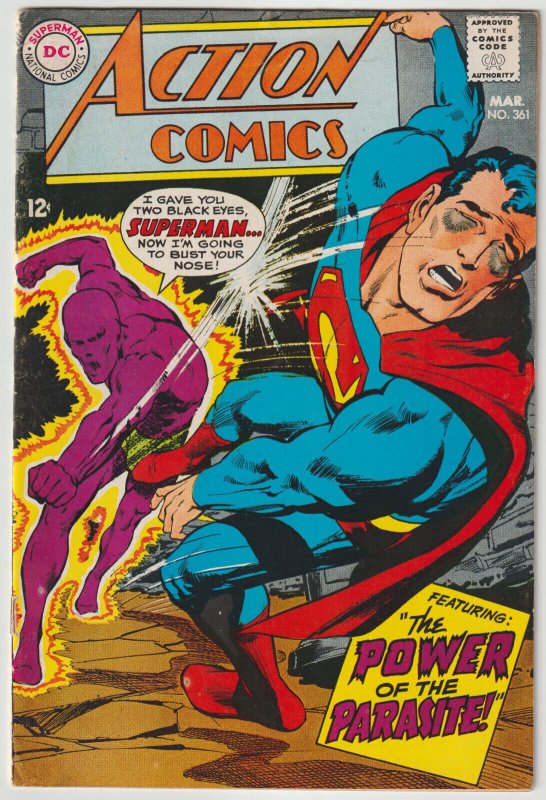 Action Comics #361 (Mar 1968, DC), VG condition (4.0), 2nd app. of the Parasite