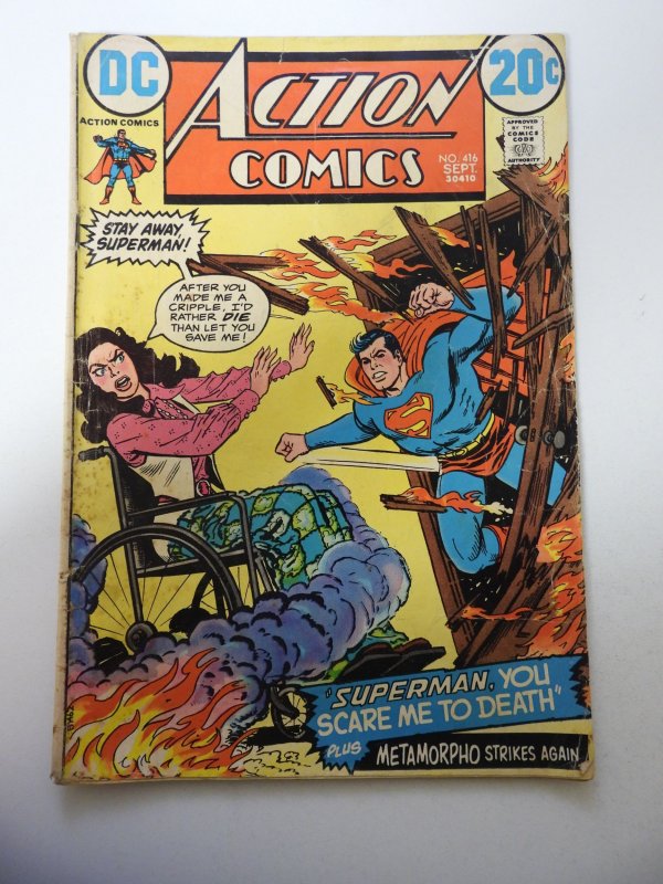 Action Comics #416 (1972) VG- Condition centerfold detached at 1 staple