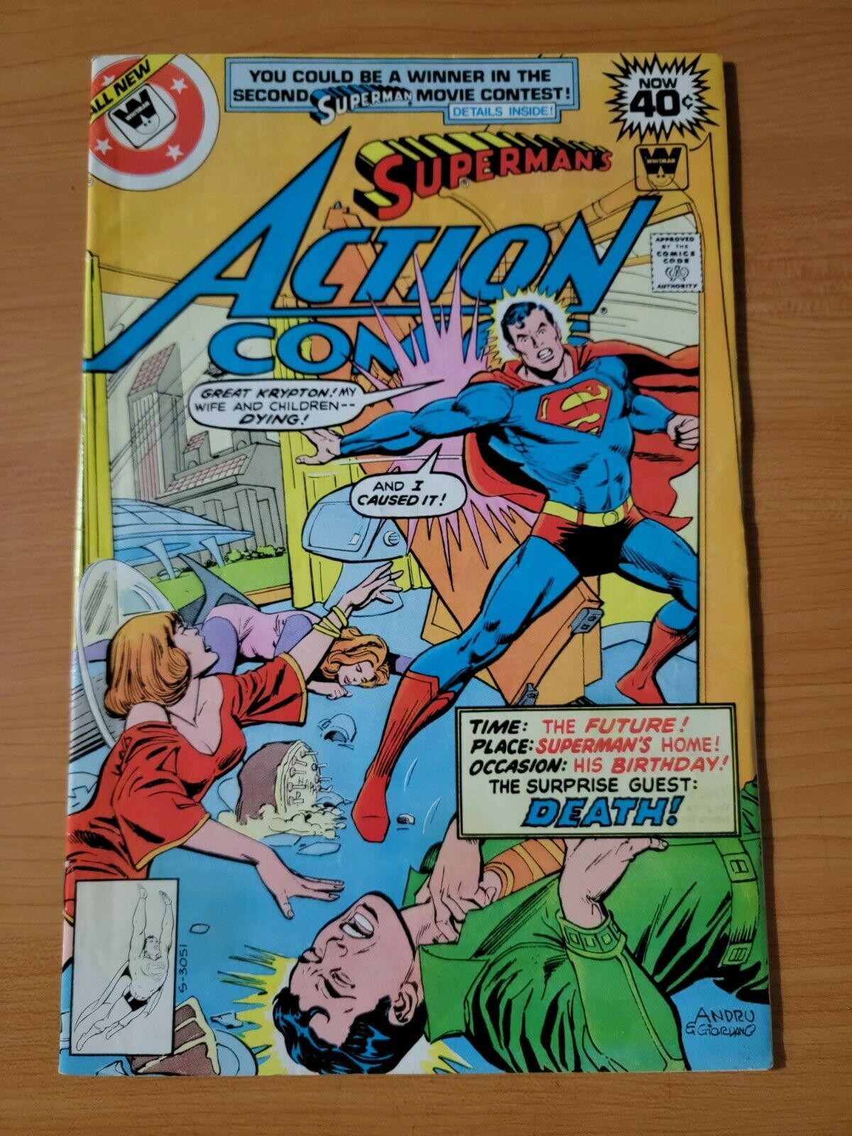 Item DescriptionAction Comics #492 Whitman VariantPublisher: DC ComicsPublished: 1979Item Grade/ConditionGrade: FINE - VERY FINEFor more information about this grade and other grades, please see our grading standards.~ WE TAKE HIGH DEFINITION PICTURES OF OUR COMICS ~ For more detail use the ZOOM Function and check them out yourself! ~Shipping Info:United States: Comic Book & Magazine Orders of all sizes, big and small ship for a flat Single Shipping ChargeInternational: We use Calculated Shipping! ~ This insures that you get the LOWEST POSSIBLE COST! ~ Please give us one business day to calculate large orders! The Calculator for Hip is pretty bad for international, contact us if you are looking to order multiple books so we can help you make it work on the back end! As a courtesy to our customers, we insure all orders over 50$ US ~ YOU DONT PAY EXTRA!Delivery TimeWe process and ship all orders within 1 business days. Once shipped, estimated U.S. transit time is 2-10 business days; international 14-21 business days.(Orders placed on Friday afternoon as well as weekends will be shipped the next business day as we do not ship on the weekends).PackingOmnomax Traders has mastered packing to ensure our orders of a "damage-free transport."Using the following methods, we have seen a nearly perfect 99% success rate for undamaged comics!Here is how our orders ship:All Orders :Bagged AND Boarded, ALWAYS NO EXCEPTIONS!Shipped in a Gemini Comic Mailer OR Tightly secured between 4x stiff pieces of corrugated cardboard (double Sandwiched)Sealed on all 4 sides with strong packing tape (Items doesn't even wiggle).:*Now this method is nearly perfect! however we have seen damage happen to items ( only once or twice a year ) ~ this is often due to bad handling by the postal service. Always remember to contact us if this happens! we are committed to quality service!*Offers History