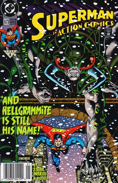 Item: Action Comics #673 (Newsstand) | Publisher: DC | Cover Date: January 1992 | Writer: Roger Stern | Artist: Bob McLeod | Cover Artist: Dan Jurgens | Appearances: Hellgrammite, Mannheim, Superman (Clark Kent/Kal- ... Read More