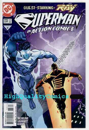 Condition: See more info in our description area...ACTION COMICS #733, NM+, New custome, 1997, Ray, Sins of Change Name of Comic(s)/Title?: ACTION COMICS #733 ...{StockPhoto}... Publisher: DC Comics...... Art by/Featuring/Stories?: Featuring an issue of Action Comics...Artist(s): Denis Rodier, Tom Grummett....Writer(s): David Michelinie...Front Cover: ?...Rated PG...Story ; "The Sins of Change"!... A New custome for Superman, and guest starring the Ray...! Grade of item? : This issue is in NEAR MINT+ (unread) condition.... Created when? : 1997... Front Cover description : Brand new, with very slight handling wear (if any)... Back Cover description : Brand new... Page quality description : Brand new... Tape or writing?: No... How are staples?: Staples are secure.... Flat & supple : Yes.... Don't get caught napping...Will come bagged & boarded... 1st Printing!!... More SUPERMAN & MOVIE/TV related items in our store. Be sure to check out all of our current on-going auctions!! Lots of great product at affordable prices!!! Bookmark our listings with (control + D). Lots more coming in the next few weeks!!!! Check out the scan(s). If you like this? Our store name is HighQualityComics...aka HQComics... We have been doing mail-order since 1988. We guarantee Absolute Satisfaction on All Orders! Shipping in a box. Combine auctions to save on postage. INTERNATIONAL CUSTOMERS : Email us for international shipping rates & acceptable ways to pay. INTERNATIONAL CUSTOMERS : Email us for acceptable ways to pay and shipping options, before you place an order. Thanks! This listing created with GLETech Multiple Selling Channel tools.