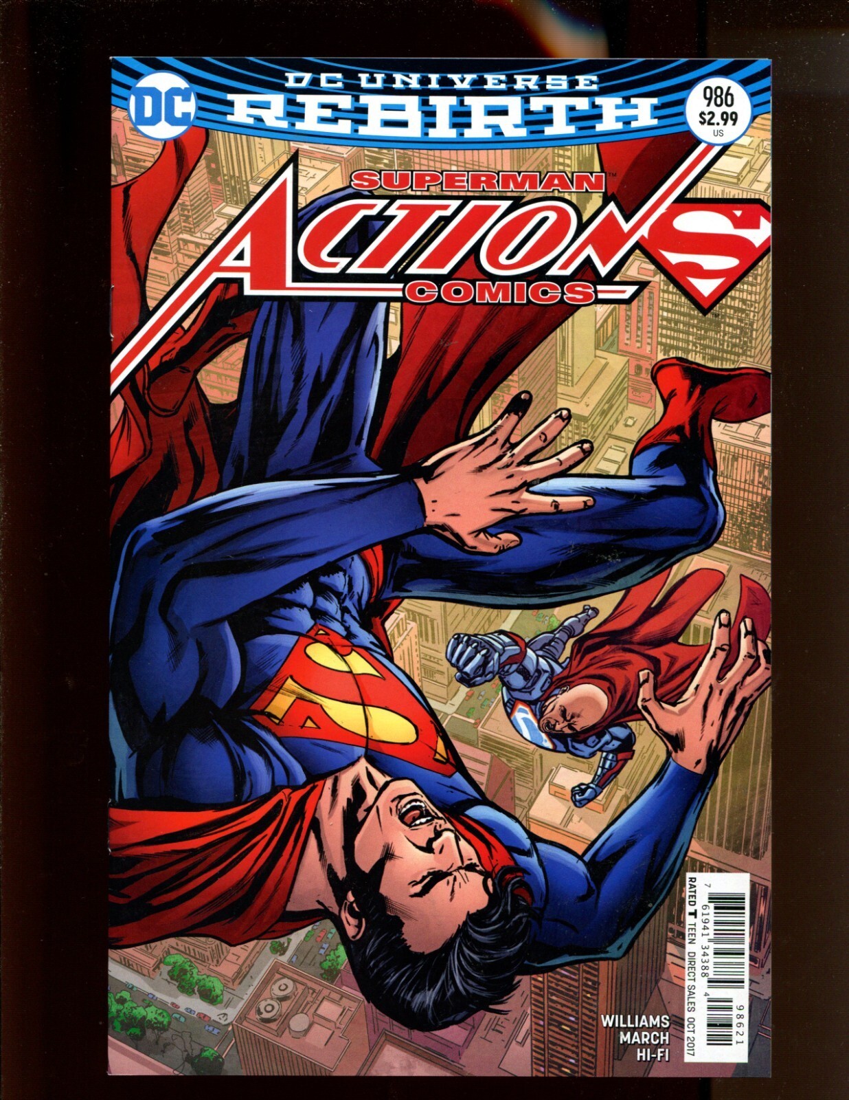 Grade: 9.2 Near Mint-Action Comics #986 - WE COMBINE SHIPPING! (9.2) 2017Size: 7" x 10"This item was uploaded by __AG____.WE COMBINE SHIPPING!!! Either wait for us to send you an invoice after you commit to buy or, if it makes you pay right away, message us back and we'll refund the excess charge. Buy as many single comic books as you want for one low flat shipping rate in the United States! International will be charged exact according to size and weight. If you have any specific questions or requests, please ask us prior to ordering and we'll get back to you as soon as we can. If there are any problems with your order whatsoever, please message us before leaving feedback and we'll be happy to work with you to fix the situation! We ship worldwide, combine purchases, and charge exact shipping. The price may vary based on size, weight, and location. If you are automatically overcharged for shipping, message us and we'll be happy to revise the invoice or refund you the excess amount. If you have any questions regarding shipping, please message us. International Buyers - Please Note: Import duties, taxes, and charges are not included in the item price or shipping cost. These charges are the buyer's responsibility. Please check with your country's customs office to determine what these additional costs will be prior to bidding or buying. Payment can be made by PayPal and credit cards directly. 120,000+ items in total in my Hip store! Frequently Asked Questions: When are your operation hours?Our in office hours are Monday - Friday, 11 am - 8 pm. We are not open on weekends, so if you send us a request on Friday evening we won't get back to you until Monday afternoon. Please don't take it as us ignoring you! We will work on your request Monday and get back to you as soon as we can. Also, if you order from us on a Friday evening or Saturday morning we won't start processing your order until we open on Monday. That means on Monday it will be pulled and prepped for shipping, then picked up by the postman on Tuesday morning.When will you ship my item? The tracking hasn't moved.We realize you're eager to get your item, so if the tracking hasn't moved in a few days please don't be concerned. We give the postman a lot of packages daily, sometimes as many as 100, so he does not scan each item for us upon pickup as he says it would be too time consuming for him to do so. If you get a tracking number from us, that almost always means your item was picked up by the postman the next business day. The USPS is also imperfect. There are times when the tracking won't even show movement until it's in your area's regional distribution center. This is normal in our experience. Is the item pictured the exact one for sale?Yes! We don't use stock images and go through great lengths to scan or photograph everything we list. The item pictured is exactly what you should receive UNLESS it is a fixed price listing with multiple items available. Can you issue a COA? We can, upon request. Please make sure you leave us a note while checking out and shoot us a message immediately after requesting one, just to be sure. How do you grade?Grading is very subjective, but we are professionals with decades of grading experience between us who try the best we can to accurately describe the condition of the items we list. Anthony is an Overstreet Comic Book Price Guide Advisor Please see the grading chart below for a breakdown of how we grade: NOTE: We don't grade any raw books higher than 9.2, as once you go higher than that grading gets really subjective. If you buy a NM book from us, it may very well be higher than 9.2 but we play it safe and grade conservatively. 9.2 NM Near Mint 9.0 VF/NM Very Fine/Near Mint 8.5 VF+ Very Fine+ 8.0 VF Very Fine 7.5 VF- Very Fine- 7.0 FN/VF Fine/Very Fine 6.5 FN+ Fine+ 6.0 FN Fine 5.5 FN- Fine- 5.0 VG/FN Very Good/Fine 4.5 VG+ Very Good+ 4.0 VG Very Good 3.5 VG- Very Good- 3.0 GD/VG Good/Very Good 2.5 GD+ Good+ 2.0 GD Good 1.8 GD- Good- 1.5 FR/GD Fair/Good 1.0 FR Fair 0.5 PR PoorHow do you ship comics? We ship in rigid cardboard mailers to protect your comic book from the worst the mail system has to offer. Price varies based on the number of books you purchase, but we try to keep costs as low as we can and charge exact shipping. If it looks unusually high to you please send us a message and we'll be happy to double check for you. Do you combine shipping? Yes, of like items. Such as: several comics can fit in one cardboard mailer, as can more than one record. Multiple art pages can easily be combined because they are light and thin. Where combined shipping differs is with size and weight. For instance, two statues require a much bigger box. Same goes for CGCs, as the package gets bigger and heavier as you go. Do you ship well? I've had some bad experiences... You needn't worry; we are professionals who value your business and want your item to arrive safely as much as you do. I have been collecting for over 30 years. I send out items the way I would like to receive them. The tracking says my item is "OUT FOR DELIVERY" in New Jersey. Why is that?If the tracking indicates that the item is "OUT FOR DELIVERY" in NJ don't worry, it's just what the tracking says when it's carried over from the postman to the sorting center. This is normal for our Post Office and will not impact you receiving your item in a timely matter.What is the difference between a RUN and a LOT?Good question. A RUN will be a collection of consecutive issues with no breaks in between them. If it says RUN of #s 1 - 50 you will receive 50 consecutive comics. A LOT will be within a certain range, so a 50pc LOT will not contain consecutive books.I changed my mind after successfully winning the auction or fixed price listing, will you cancel the transaction? Please only bid or hit BUY IT NOW if you are willing to follow through and pay for the item, we will not cancel the transaction. As a seller, Hip penalizes us every time we cancel a