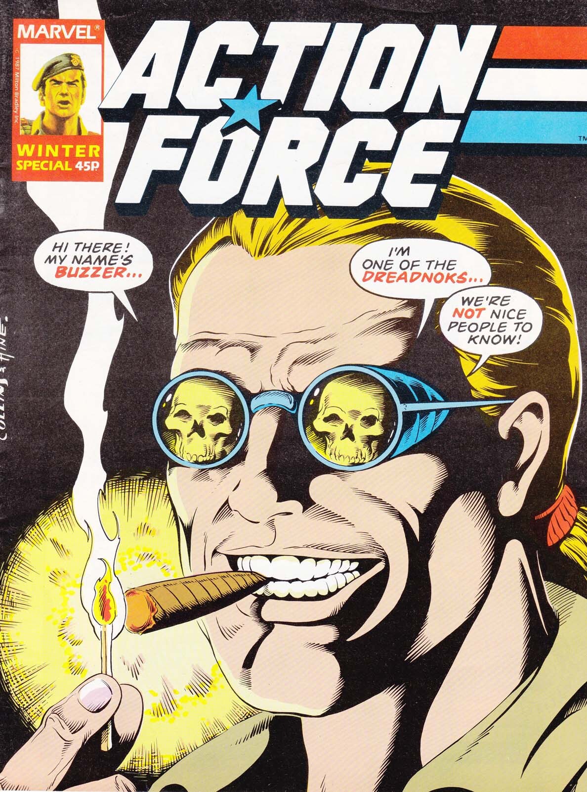 Item: Action Force (Marvel UK) Special #2 | Publisher: Marvel UK | Cover Date: October 1987 | Writer: Larry Hama | Artist: Larry Hama, Rod Whigham | Cover Artist: Mike Collins, Dave Hine | With Economy shipping, each additional comic ships for just 50 cents more to customers in the USA. This listing contains a stock photo and information from ComicBase™ and © Human Computing. The stock photo is for reference only. If you would like to see a photo of the actual item, please message us prior to purchasing.
