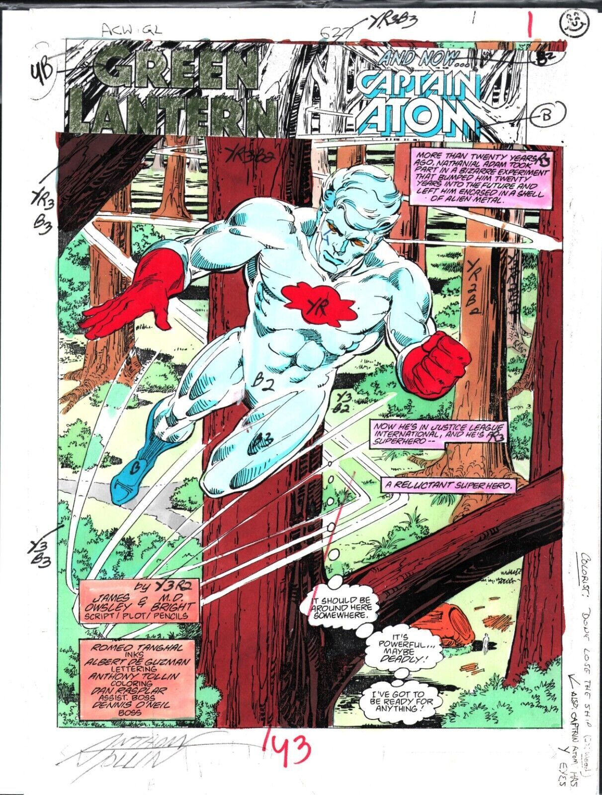 Actions Comics Weekly #627 Green Lantern - Title Page Splash - Color Guide ArtSigned by Anthony Tollin"This is a B&W STAT photo copy that the colorist, Anthony Tollin, painted over to create the published page. This ... Read More