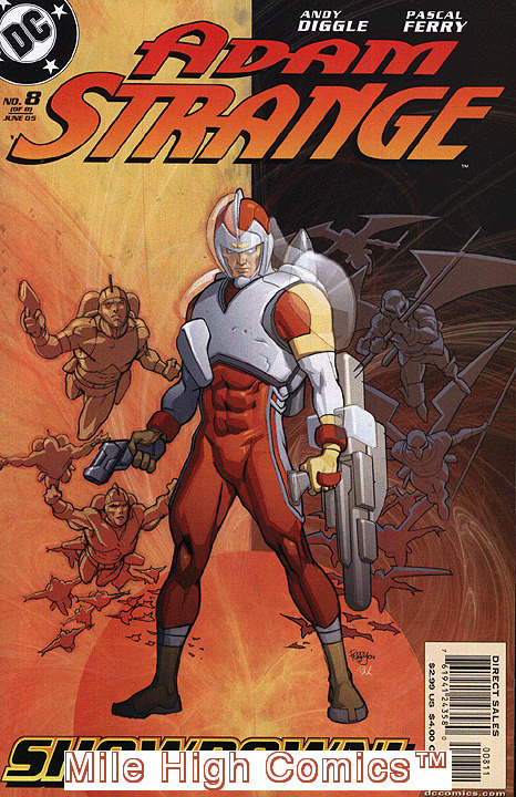 Please note: this is only one of the many thousands of back issue comics, magazines, comics trade paperbacks, and comics hardback collections that we list for sale on Hip. We stock over eight million comics and books in our Denver warehouse, and our gigantic 35,000 square foot Central Denver Mega-Store. Please enjoy shopping! In addition to our low prices, you can also combine an unlimited number of comics (up to 20 comics) and books into a single order for only a $6.95 shipping charge for delivery anywhere in the USA, and $25.00 shipping on most International orders. An important note: the cover photo of the item shown in this listing, is not a scan of the actual item. We sell well over one million back issue comics a year, and thus have a huge library of past scans that we utilize to illustrate the books that we are offering on Hip. Below we have listed a very detailed written description of our grading standards for this particular book. If the issue that we send you fails to meet any part of our grading criteria, we'll arrange for a full refund. The final bit of information that you need to know about us is that our Hip warehouse is closed on the weekends and holidays. We generally ship all our Hip orders Monday-Friday, and with the exception of orders arriving on Friday, we generally can ship Hip orders within 48 hours. Happy Collecting! Chuck Rozanski, President - Mile High Comics, Inc. ADAM STRANGE (ANDY DIGGLE) (Series Began 2004) Issue #8 comics in Very Good condition. Published by DC Comics .Very Good - The average used comic book. A comic in this grade shows wear, can have a reading or center crease and/or a rolled spine, but has not accumulated enough total defects to reduce eye appeal to the point that it is not a desirable copy. Discoloration, fading and even minor soiling is allowed. As much as a 1/4 inch triangle can be missing out of the corner or edge. A missing square piece, 1/4 inch by 1/4 inch, is also acceptable. Store stamps, name stamps, arrival dates, initials, etc. have no effect on this grade. Cover and interior pages can have one or two minor tears and folds and the centerfold may be loose or detached. One staple can be loose, but the cover is not completely detached. Common bindery and printing defects do not affect grade. Pages and inside covers may be brown but not brittle. Tape should never be used for comic book repair, however may Very Good condition comics have minor tape repair.We list over 200,000 items in our Hip Store. Shipping costs apply only to the first item. All additional items in the same order ship for free!The image in this listing is from a random copy of this product that we have had in stock recently. It probably will not be the item we send you, nor even representative of the grade of this item, but is meant to help you determine if this is the item you want.Seller Information