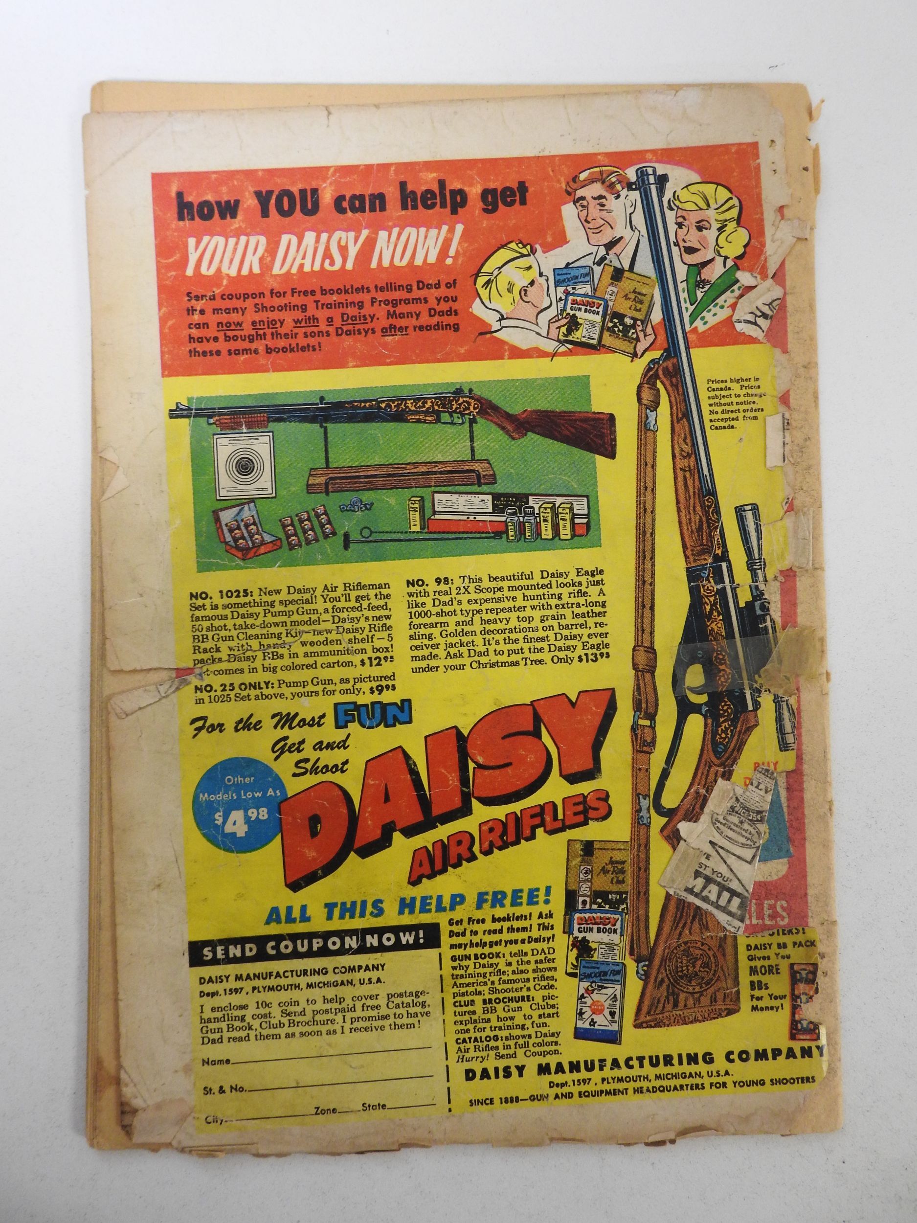 book-length spine split, moisture stains, tape stains, 2 extra staples added, 3 in tear bc, 2 in tear fc