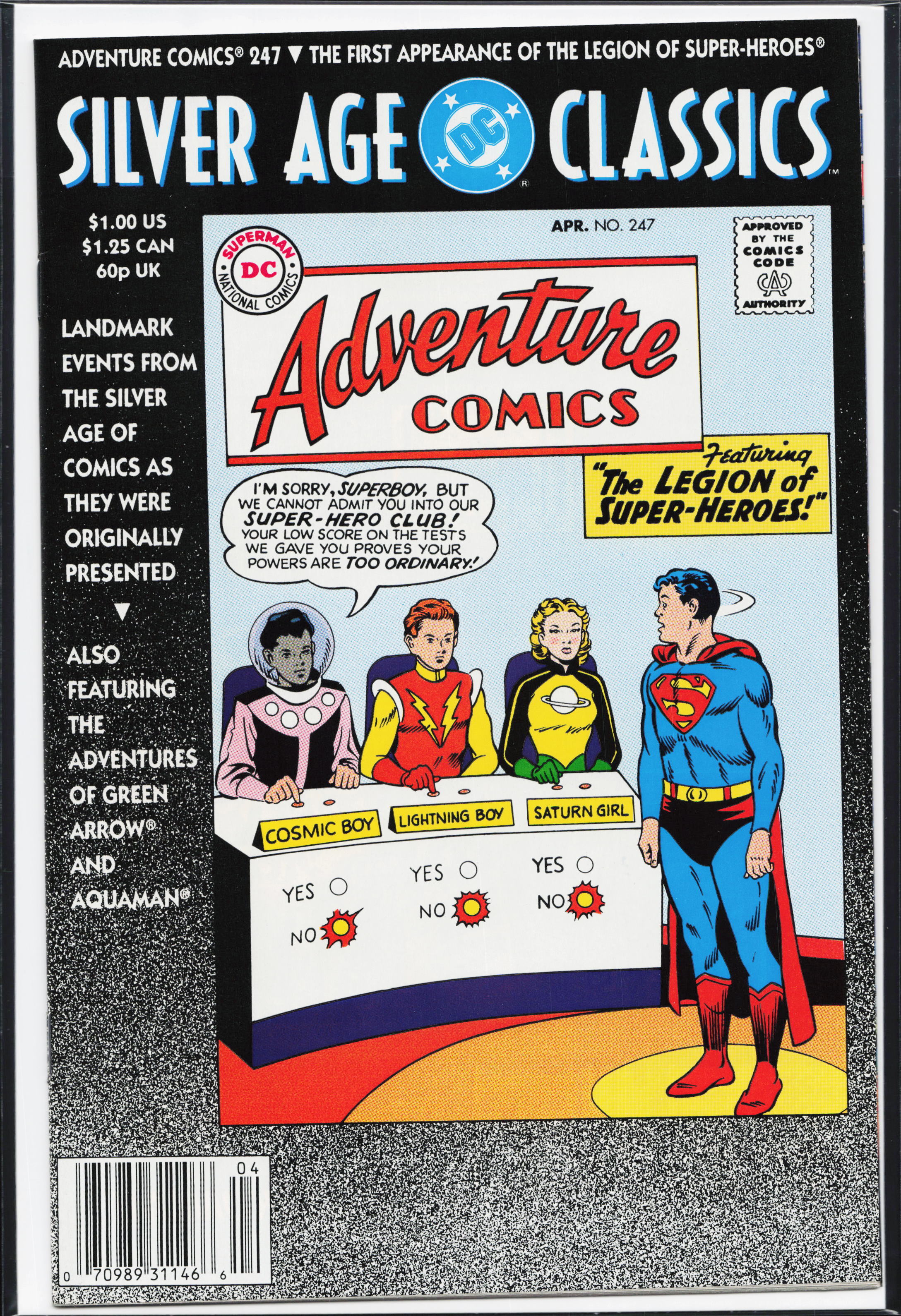Adventure Comics #247 Silver Age Classics Cover (1992) First Appearance: Legion of Super-Heroes, Cosmic Boy (Rokk Krinn), Lightning Lad (Garth Ranzz), Saturn Girl (Imra Ardeen), Time Bubble, Legion ClubhouseSeller Information