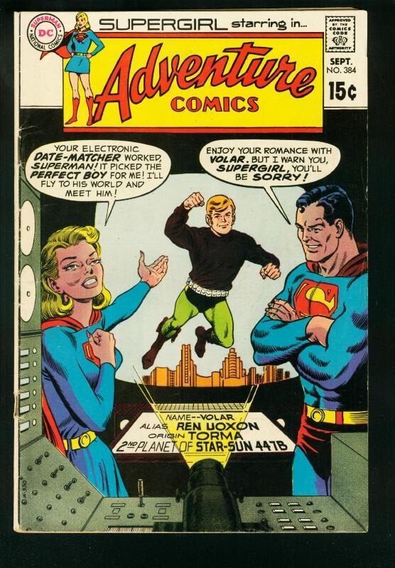 Adventure comics #384 1969-supergirl-dating machine-dc comics-vg supergirl starring in adventure comics. Staple pull at bottom staple. Title: adventure issue: 384 grade: vg sku: ctr-47-027