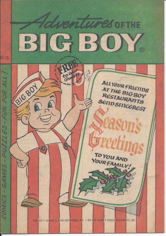 Adventures of the Big Boy, #118, April, 1966. Condition Very Good. Selling this one for only $2.95Adventures of the Big Boy is a promotional comic published by Big Boy Restaurants. Adventures of the Big Boy is fun for everyone and includes, games, puzzles, and the stories Pleasant Present,