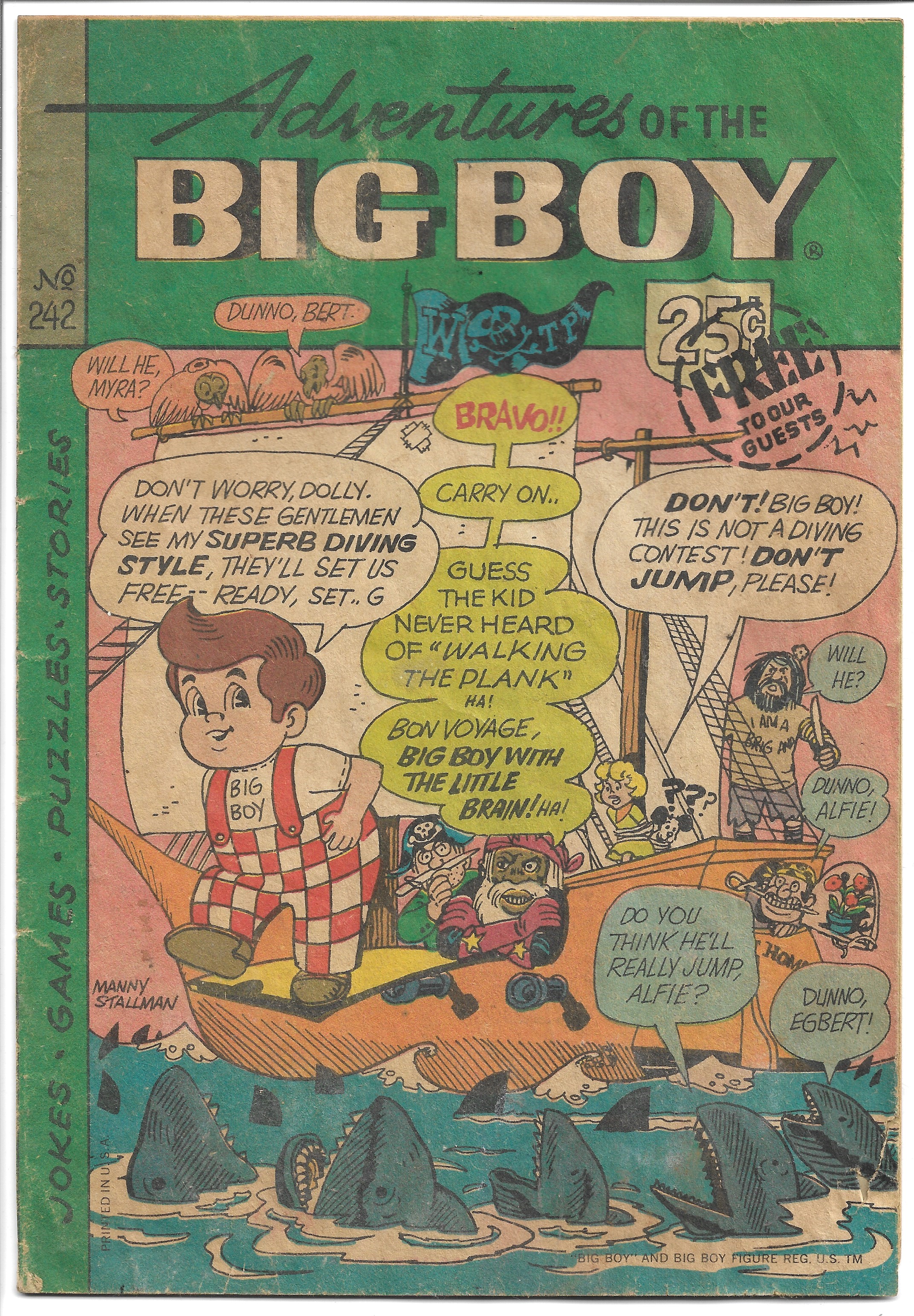 Adventures of the Big Boy #242, June, 1977, Condition Good Plus. Selling this one for only $4.95.Please Note: Some taring on front cover, and Tic Tack Toe is done on back cover