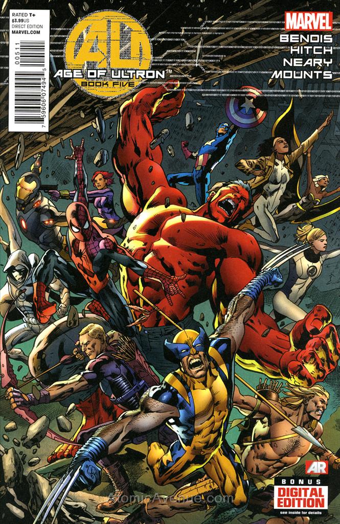 Item: Age of Ultron #5 | Publisher: Marvel | Cover Date: June 2013 | Writer: Brian Michael Bendis | Artist: Bryan Hitch | Cover Artist: Bryan Hitch | With Economy shipping, each additional comic ships for just 50 cents more to customers in the USA. This listing contains a stock photo and information from ComicBase™ and © Human Computing. The stock photo is for reference only. If you would like to see a photo of the actual item, please message us prior to purchasing.Seller Information