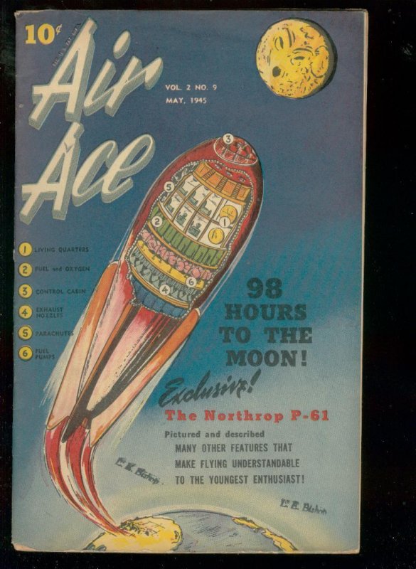 Air ace v.2 #9 1945-street & smith comics-rocket cover fn wild rocket ship cover, moon travel. 1945 grade: fn sku: ds-01-068