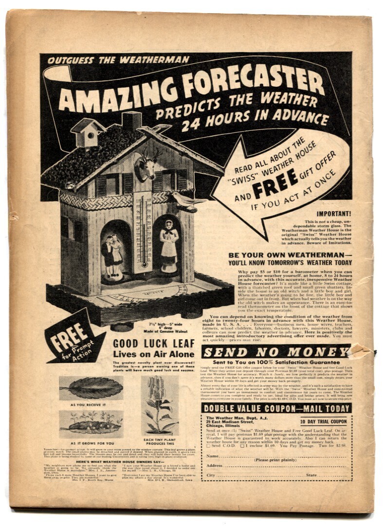 Grade: VG-Airboy Vol 2 #12 -Wild Golden Age Horror cover VG- -Horror themed cover. -Bondage stories. -Looks nice but has tear halfway down opening edge of front cover. -Bottom half of spine split, cover barely hanging on to staple. -Handle with care. Grade: VG- SKU: DHV-06-313