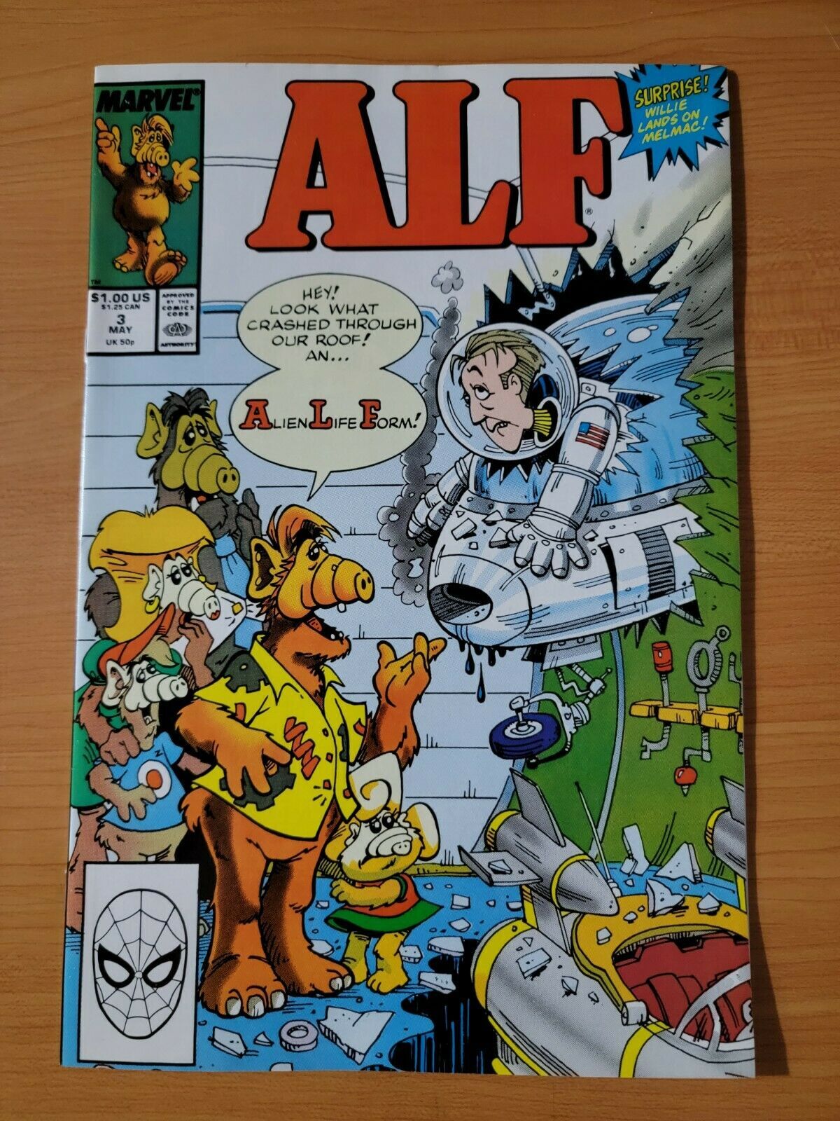 Item DescriptionALF #3 Direct Market EditionPublisher: Marvel ComicsPublished: 1988Item Grade/ConditionGrade: NEAR MINTFor more information about this grade and other grades, please see our grading standards.~ WE TAKE HIGH DEFINITION PICTURES OF OUR COMICS ~ For more detail use the ZOOM Function and check them out yourself! ~Shipping Info:United States: Comic Book & Magazine Orders of all sizes, big and small ship for a flat Single Shipping ChargeInternational: We use Calculated Shipping! ~ This insures that you get the LOWEST POSSIBLE COST! ~ Please give us one business day to calculate large orders! The Calculator for Hip is pretty bad for international, contact us if you are looking to order multiple books so we can help you make it work on the back end! As a courtesy to our customers, we insure all orders over 50$ US ~ YOU DONT PAY EXTRA!Delivery TimeWe process and ship all orders within 1 business days. Once shipped, estimated U.S. transit time is 2-10 business days; international 14-21 business days.(Orders placed on Friday afternoon as well as weekends will be shipped the next business day as we do not ship on the weekends).PackingOmnomax Traders has mastered packing to ensure our orders of a "damage-free transport."Using the following methods, we have seen a nearly perfect 99% success rate for undamaged comics!Here is how our orders ship:All Orders :Bagged AND Boarded, ALWAYS NO EXCEPTIONS!Shipped in a Gemini Comic Mailer OR Tightly secured between 4x stiff pieces of corrugated cardboard (double Sandwiched)Sealed on all 4 sides with strong packing tape (Items doesn't even wiggle).:*Now this method is nearly perfect! however we have seen damage happen to items ( only once or twice a year ) ~ this is often due to bad handling by the postal service. Always remember to contact us if this happens! we are committed to quality service!*Offers History