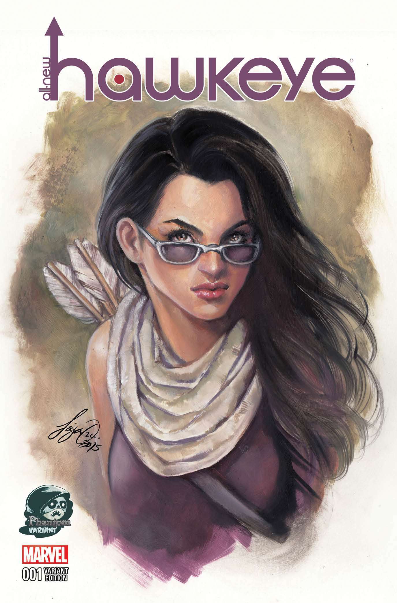 Item: All-New Hawkeye (2nd Series) #1E | Publisher: Marvel | Cover Date: January 2016 | Writer: Jeff Lemire | Artist: Ramon K. Perez | Cover Artist: Siya Oum | Appearances: Hammerhead, Hawkeye (Clint Barton), Hawkeye (Kate Bishop), Lucky, Mandarin, NYPD | Storylines: The Bishop’s Man, Part 1 | Notes: Phantom Color variant by Oum | With Economy shipping, each additional comic ships for just 50 cents more to customers in the USA. This listing contains a stock photo and information from ComicBase™ and © Human Computing. The stock photo is for reference only. If you would like to see a photo of the actual item, please message us prior to purchasing.Seller Information