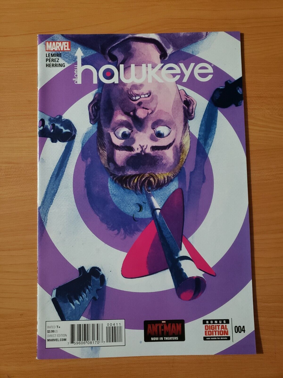 Item DescriptionAll New Hawkeye #4Publisher: Marvel ComicsPublished: 2015Item Grade/ConditionGrade: NEAR MINTFor more information about this grade and other grades, please see our grading standards.~ AS ALWAYS, WE TAKE HIGH DEFINITION PICTURES OF MOST OF OUR COMICS ~ For more detail use the ZOOM Function and check them out yourself! ~ Pictures are of the EXACT Comics in this listing!Shipping Info:United States: Orders of all sizes, big and small ship for a flat fee of - $3.50 ~WE LOVE FREE SHIPPING ~ This Standard May not apply to US Orders!~International: We use Calculated Shipping! ~ This insures that you get the LOWEST POSSIBLE COST! ~ Please give us one business day to calculate large orders! As a courtesy to our customers, we insure all orders over 50$ US ~ YOU DONT PAY EXTRA!Delivery TimeWe process and ship all orders within 1 business days. Once shipped, estimated U.S. transit time is 2-10 business days; international 14-21 business days.(Orders placed on Friday afternoon as well as weekends will be shipped the next business day as we do not ship on the weekends).PackingOmnomax Traders has mastered packing to ensure our orders of a "damage-free transport."Using the following methods, we have seen a nearly perfect 99% success rate for undamaged comics!Here is how our orders ship:Orders of 1-10 items:Bagged AND Boarded ( If Comic value is 10$ or More )Tightly secured between 2 stiff pieces of corrugated cardboardSealed on all 4 sides with strong packing tape (Items doesn't even wiggle).Protected in a large mailing envelope Orders of 10 and more:All items are bagged, and bottom item is in a board for extra protection of other items.All items are then placed together in a heavy bag. Tons of heavy packing paper &/Or Bubblewrap shields the items.Durable boxes hold the items*Now this method is nearly perfect! however we have seen damage happen to items ( only once or twice a year ) ~ this is often due to bad handling by the postal service. Always remember to contact us if this happens! we are committed to quality service!*Offers History