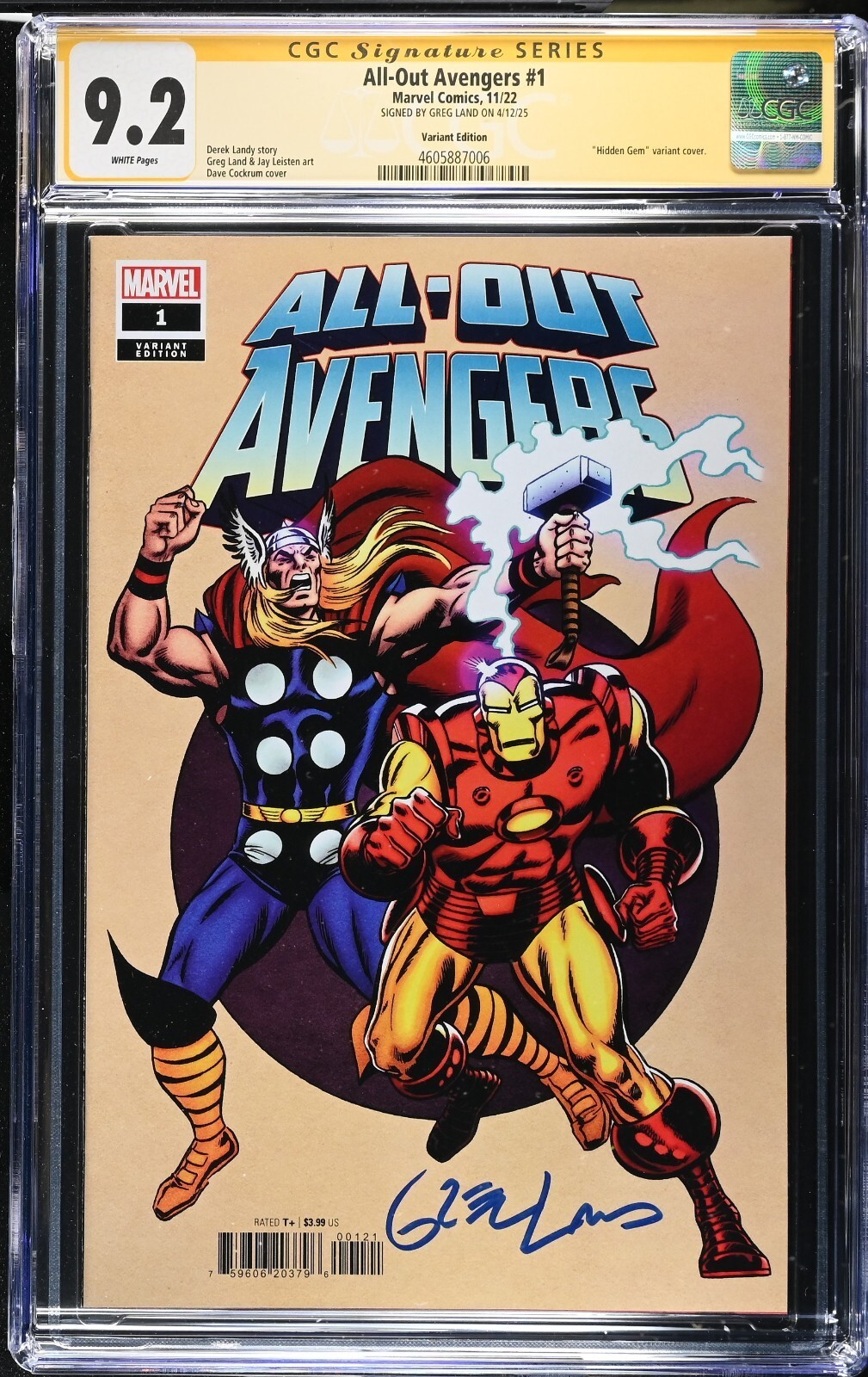 All Out Avengers (2022) # 1 (CGC SS 9.2) Signed Greg Land Marvel Comics Variant