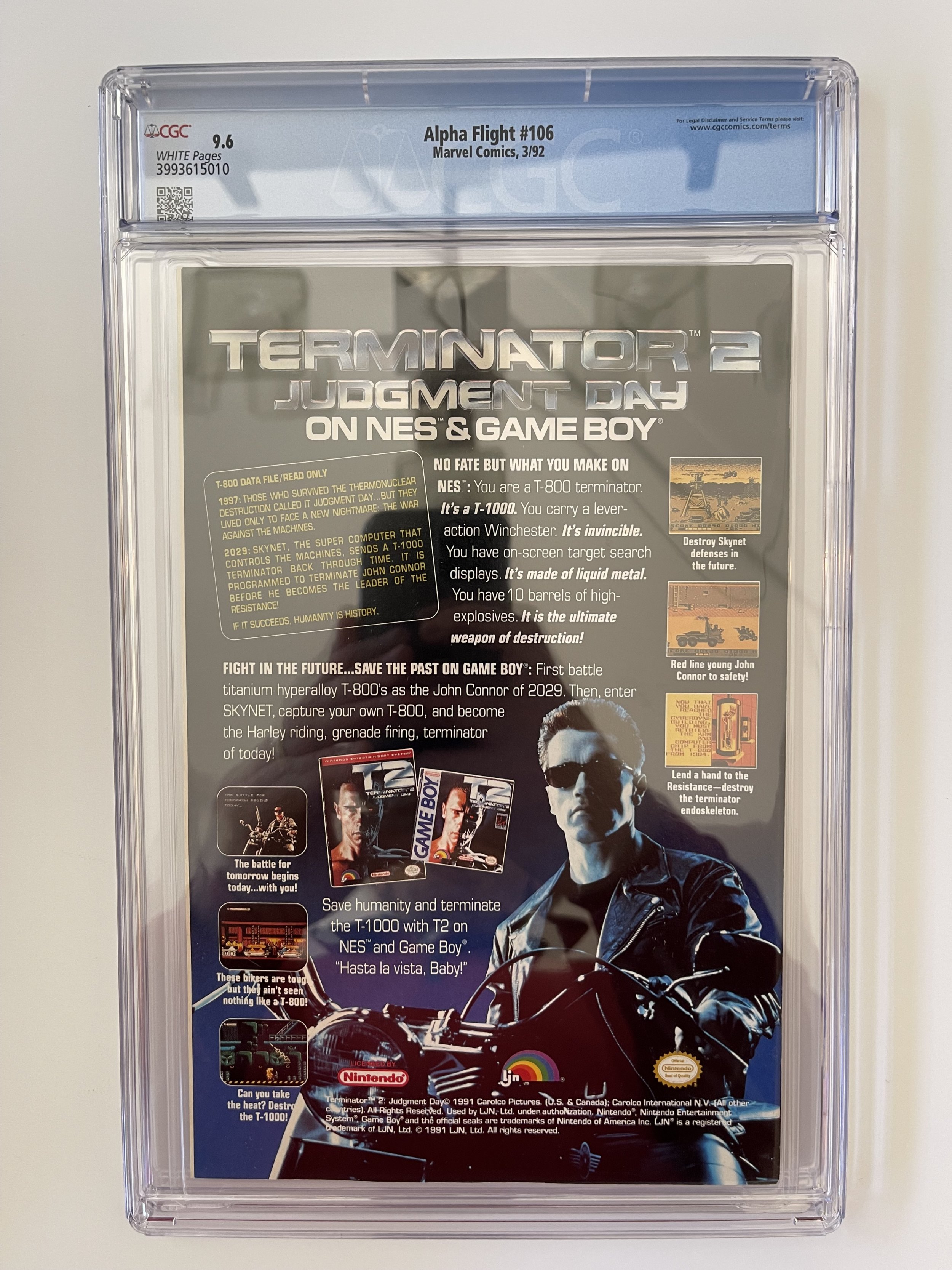 ALPHA FLIGHT #106 CGC 9.6 - Northstar Revealed, 1st App Major (1992)The pictures above represent the exact item you are going to receive. They are NOT stock pictures. There are no missing pages, rips or cutouts.I am not a professional grader, so please use the pictures above to determine the grade for yourself. I have tried to grade as accurately as possible.