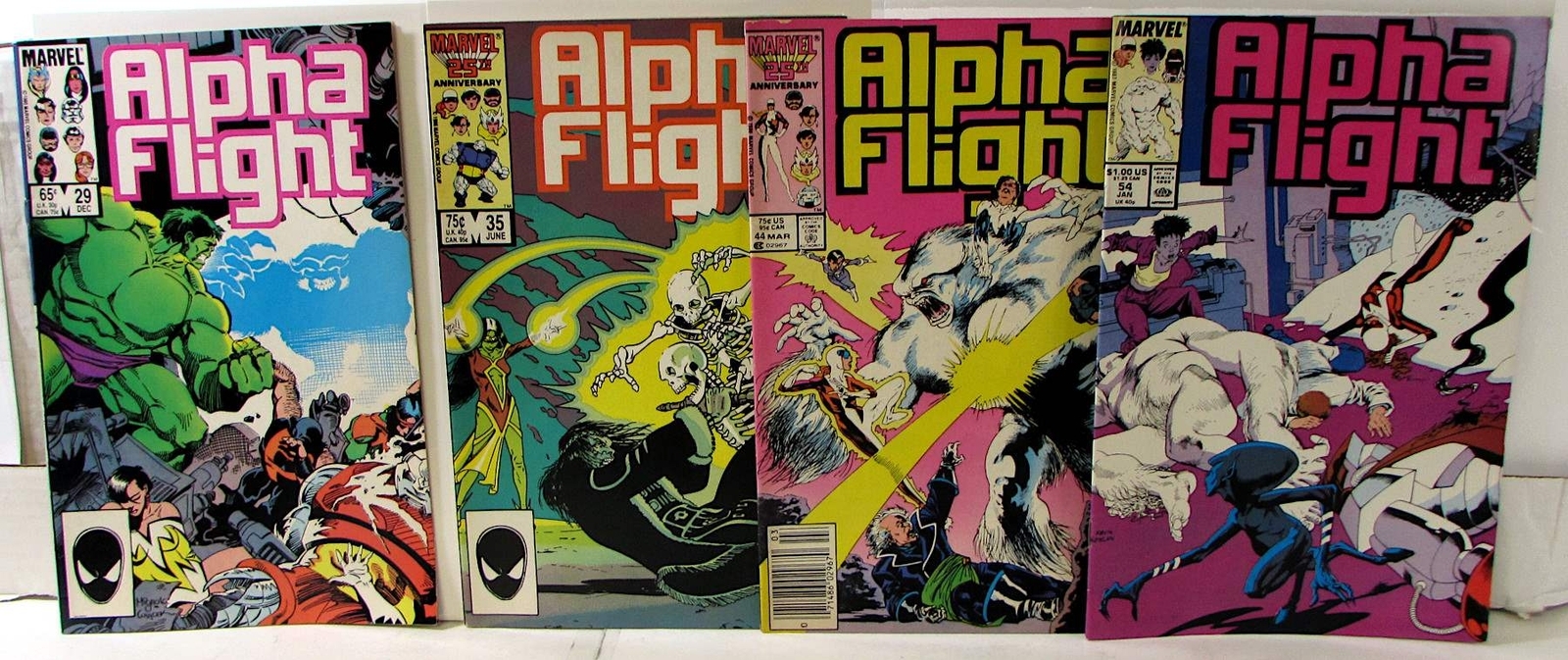 Alpha Flight Lot 4 #29, 35, 44, 54 1987 Marvel Hulk Puck Snowbird Sasquatch