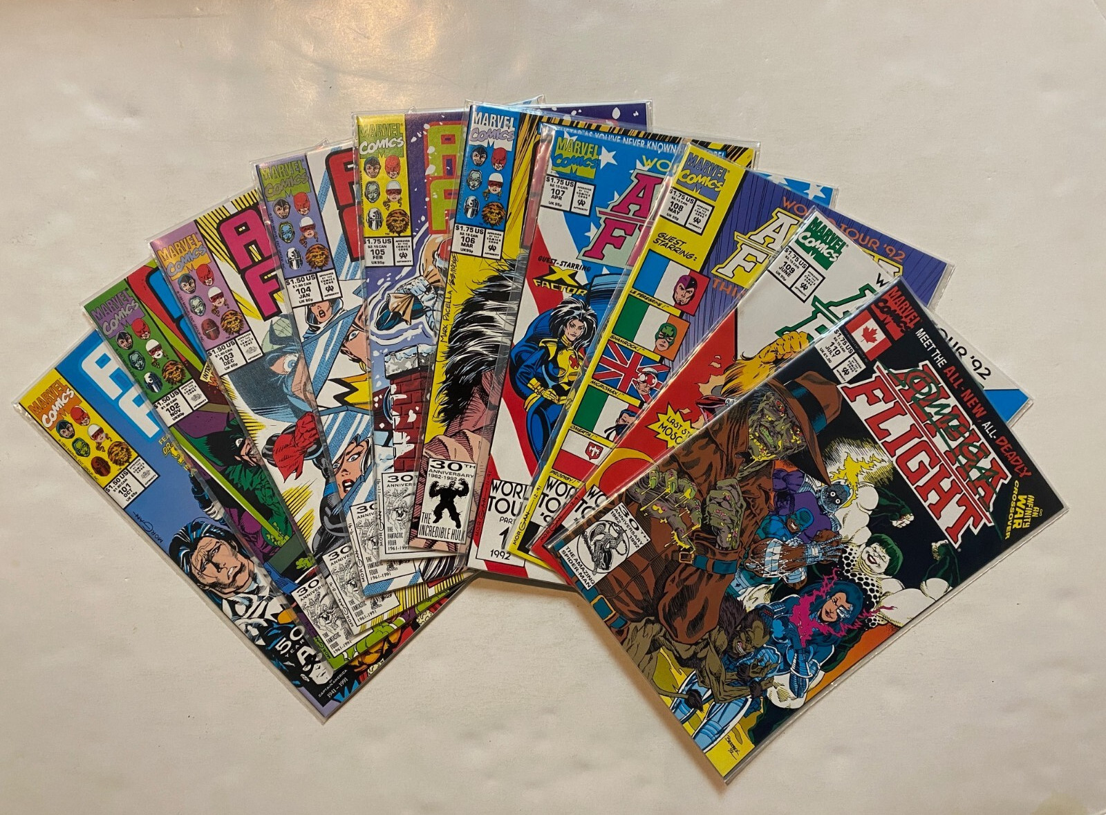 Condition: All books near-mint unless noted. From an original owner collection.Alpha Flight Vol. 1 (#101-110) 10 High Grade Books (feat. Avengers!). From an original owner collection.All books graded by Frank, and backed by our no-questions-asked money back guarantee.We encourage you to browse our store. If you buy multiple items, there's a good chance you'll save a substantial amount on shipping by combining multiple orders into one box. Friendly Frank's was started in 1978 with a $40 investment. We started Friendly Frank's Distribution in 1982, the regional distributors Co-Op Jam in 1983, the Comic Book Legal Defense Fund in 1986, and B-Bop Comics in Kansas City in 1999. A member of the 100 Million Sold Club. Largest buyer and seller of old comics in Kansas and Missouri. Thank you!