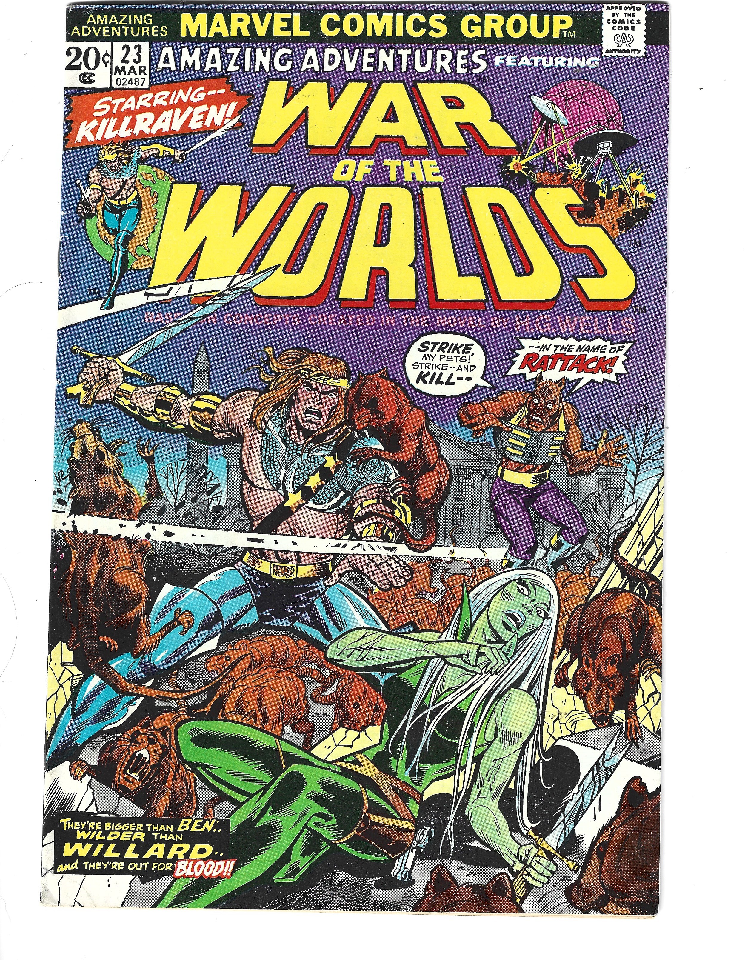 Amazing Adventures #23 (1974) I have graded the comic book, at FINE with the following defects: Light stress marks along the spine. The corners are rounded. There is some yellowing of the pages.