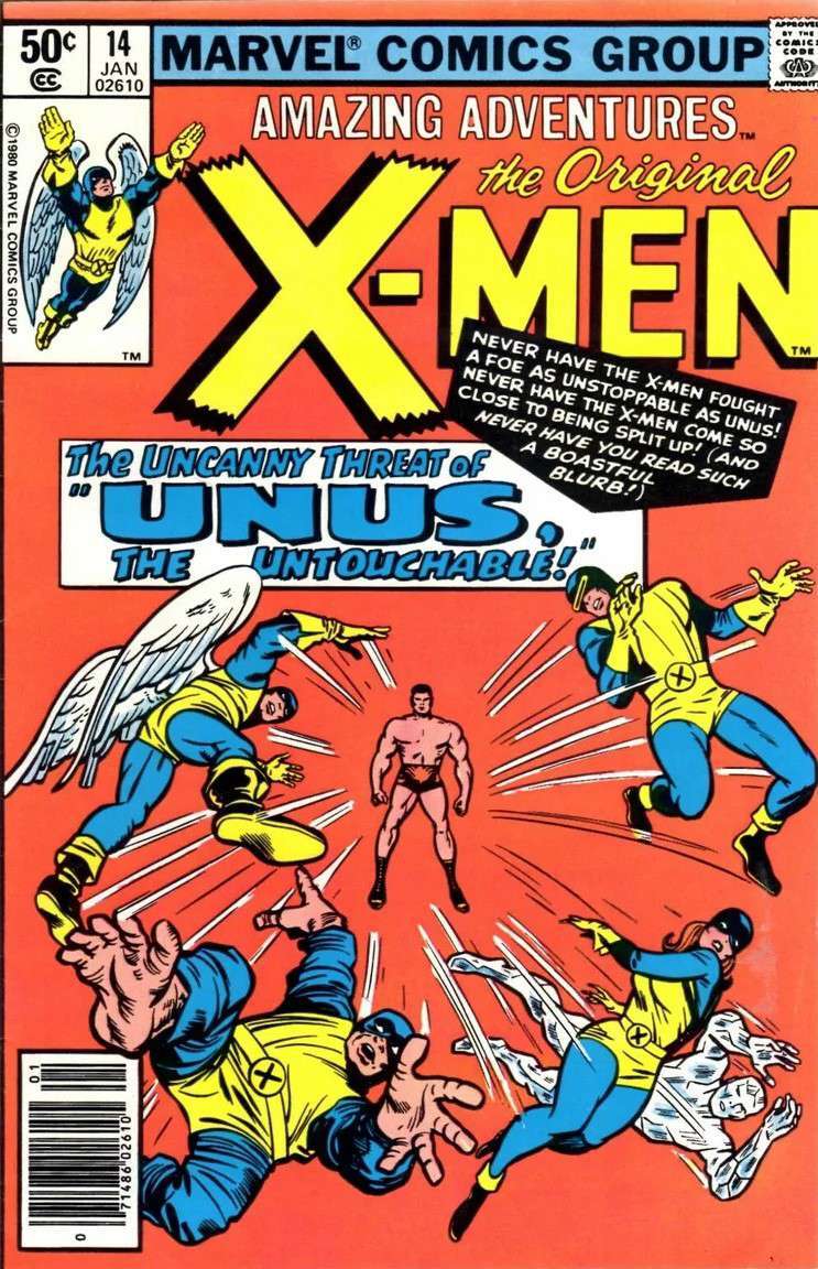Item: Amazing Adventures (4th Series) #14 (Newsstand) | Publisher: Marvel | Cover Date: January 1981 | Writer: Stan Lee | Artist: Jack Kirby | Cover Artist: Jack Kirby | Appearances: X-Men, Angel, Beast, Cyclops, Iceman, Marvel Girl, Professor X | Storylines: Unus, the Untouchable! | Notes: Reprinted from X-Men (first series) #8; Final Issue | With Economy shipping, each additional comic ships for just 50 cents more to customers in the USA. This listing contains a stock photo and information from ComicBase™ and © Human Computing. The stock photo is for reference only. If you would like to see a photo of the actual item, please message us prior to purchasing.Seller Information