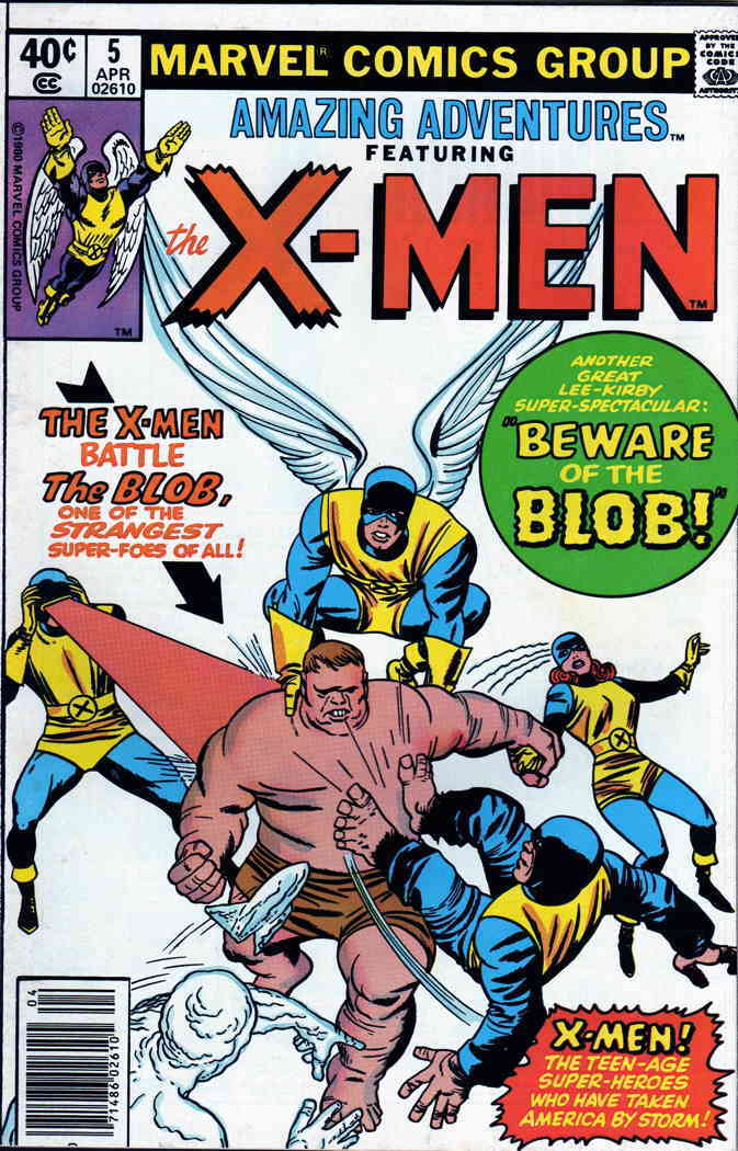 Item: Amazing Adventures (4th Series) #5 (Newsstand) | Publisher: Marvel | Cover Date: April 1980 | Writer: Stan Lee, Roy Thomas | Artist: Jack Kirby, Werner Roth | Cover Artist: Jack Kirby | Appearances: X-Men, Angel, Beast, Cyclops, Iceman, Marvel Girl, Professor X, Blob | Storylines: Beware, the Blob; The End, or the Beginning? | Notes: Reprinted from X-Men (first series) #3; 2nd story reprinted from X-Men (1st Series) #42; newsstand edition | With Economy shipping, each additional comic ships for just 50 cents more to customers in the USA. This listing contains a stock photo and information from ComicBase™ and © Human Computing. The stock photo is for reference only. If you would like to see a photo of the actual item, please message us prior to purchasing.Seller Information
