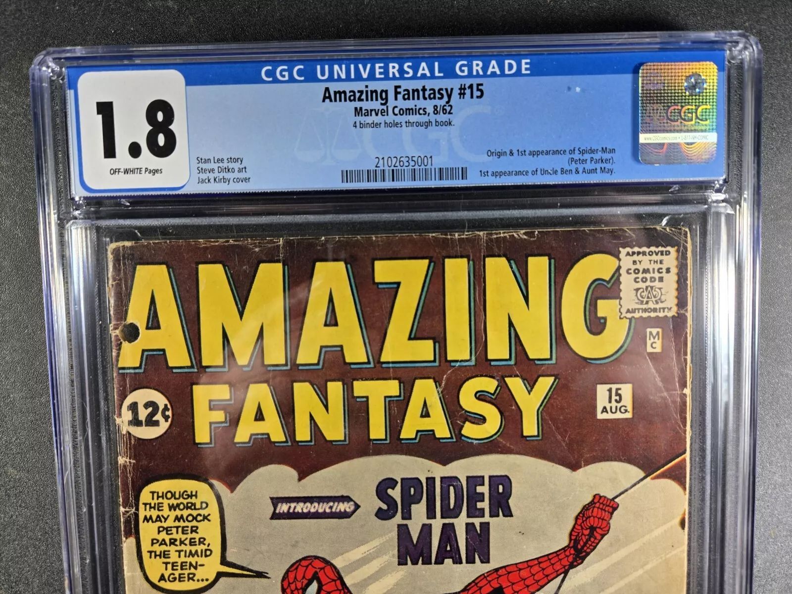 AMAZING FANTASY #15 - Origin 1st Spider-man - KEY GRAIL - MARVEL CGC 1.8
