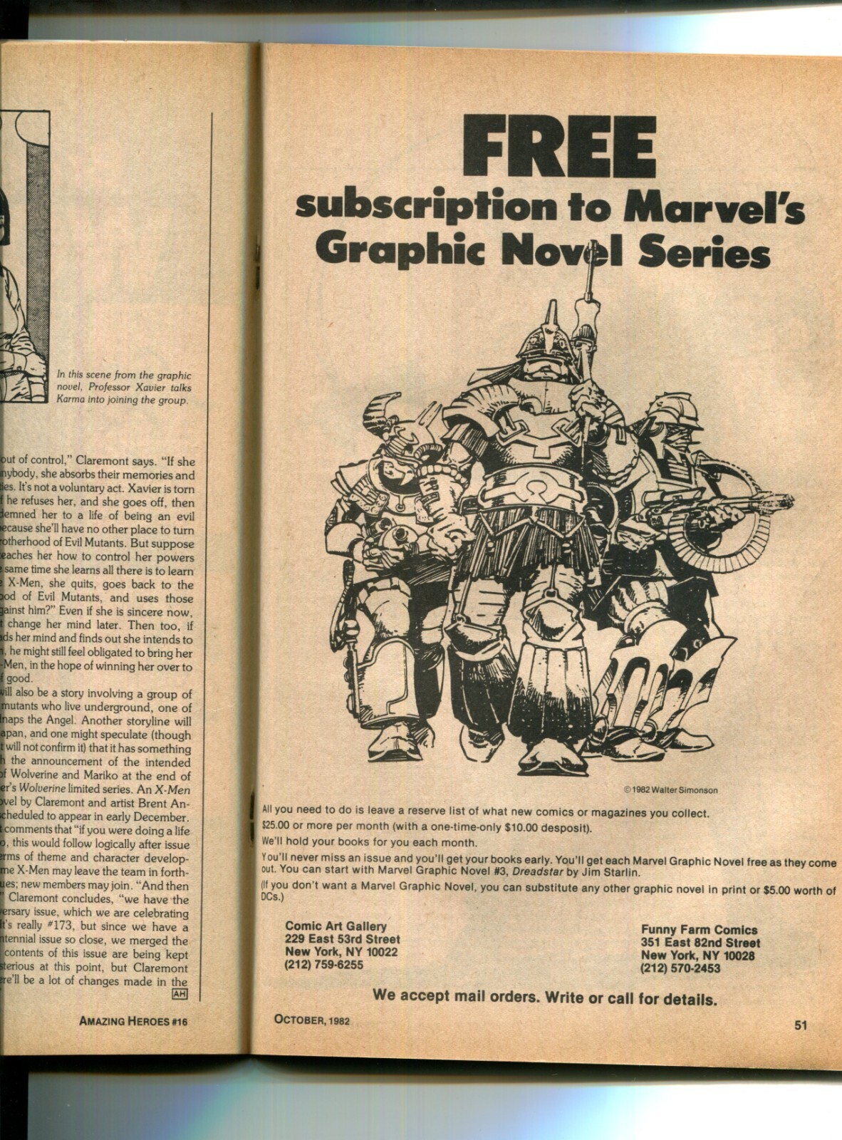 Amazing Heroes #16 - Preview New Mutants (5.0/5.5) 1982Size: 7" x 10"This item was uploaded by __LM__.WE COMBINE SHIPPING!!! Either wait for us to send you an invoice after you commit to buy or, if it makes you pay right away, message us back and we'll refund the excess charge. Buy as many single comic books as you want for one low flat shipping rate in the United States! International will be charged exact according to size and weight.If you have any specific questions or requests, please ask us prior to ordering and we'll get back to you as soon as we can.If there are any problems with your order whatsoever, please message us before leaving feedback and we'll be happy to work with you to fix the situation! We ship worldwide, combine purchases, and charge exact shipping. The price may vary based on size, weight, and location. If you are automatically overcharged for shipping, message us and we'll be happy to revise the invoice or refund you the excess amount. If you have any questions regarding shipping, please message us.International Buyers - Please Note:Import duties, taxes, and charges are not included in the item price or shipping cost. These charges are the buyer's responsibility.Please check with your country's customs office to determine what these additional costs will be prior to bidding or buying.Payment can be made by PayPal and credit cards directly.120,000+ items in total in my Hip store!Frequently Asked Questions:When are your operation hours?Our in office hours are Monday - Friday, 11 am - 8 pm. We are not open on weekends, so if you send us a request on Friday evening we won't get back to you until Monday afternoon. Please don't take it as us ignoring you! We will work on your request Monday and get back to you as soon as we can. Also, if you order from us on a Friday evening or Saturday morning we won't start processing your order until we open on Monday. That means on Monday it will be pulled and prepped for shipping, then picked up by the postman on Tuesday morning.When will you ship my item? The tracking hasn't moved.We realize you're eager to get your item, so if the tracking hasn't moved in a few days please don't be concerned. We give the postman a lot of packages daily, sometimes as many as 100, so he does not scan each item for us upon pickup as he says it would be too time consuming for him to do so. If you get a tracking number from us, that almost always means your item was picked up by the postman the next business day. The USPS is also imperfect. There are times when the tracking won't even show movement until it's in your area's regional distribution center. This is normal in our experience.Is the item pictured the exact one for sale?Yes! We don't use stock images and go through great lengths to scan or photograph everything we list. The item pictured is exactly what you should receive UNLESS it is a fixed price listing with multiple items available.Can you issue a COA?We can, upon request. Please make sure you leave us a note while checking out and shoot us a message immediately after requesting one, just to be sure.How do you grade?Grading is very subjective, but we are professionals with decades of grading experience between us who try the best we can to accurately describe the condition of the items we list.Anthony is an Overstreet Comic Book Price Guide AdvisorPlease see the grading chart below for a breakdown of how we grade:NOTE: We don't grade any raw books higher than 9.2, as once you go higher than that grading gets really subjective. If you buy a NM book from us, it may very well be higher than 9.2 but we play it safe and grade conservatively. 9.2 NM Near Mint 9.0 VF/NM Very Fine/Near Mint 8.5 VF+ Very Fine+ 8.0 VF Very Fine 7.5 VF- Very Fine- 7.0 FN/VF Fine/Very Fine 6.5 FN+ Fine+ 6.0 FN Fine 5.5 FN- Fine- 5.0 VG/FN Very Good/Fine 4.5 VG+ Very Good+ 4.0 VG Very Good 3.5 VG- Very Good- 3.0 GD/VG Good/Very Good 2.5 GD+ Good+ 2.0 GD Good 1.8 GD- Good- 1.5 FR/GD Fair/Good 1.0 FR Fair 0.5 PR PoorHow do you ship comics?We ship in rigid cardboard mailers to protect your comic book from the worst the mail system has to offer. Price varies based on the number of books you purchase, but we try to keep costs as low as we can and charge exact shipping. If it looks unusually high to you please send us a message and we'll be happy to double check for you.Do you combine shipping?Yes, of like items. Such as: several comics can fit in one cardboard mailer, as can more than one record. Multiple art pages can easily be combined because they are light and thin. Where combined shipping differs is with size and weight. For instance, two statues require a much bigger box. Same goes for CGCs, as the package gets bigger and heavier as you go.Do you ship well? I've had some bad experiences...You needn't worry; we are professionals who value your business and want your item to arrive safely as much as you do. I have been collecting for over 30 years. I send out items the way I would like to receive them.The tracking says my item is "OUT FOR DELIVERY" in New Jersey. Why is that?If the tracking indicates that the item is "OUT FOR DELIVERY" in NJ don't worry, it's just what the tracking says when it's carried over from the postman to the sorting center. This is normal for our Post Office and will not impact you receiving your item in a timely matter.What is the difference between a RUN and a LOT?Good question. A RUN will be a collection of consecutive issues with no breaks in between them. If it says RUN of #s 1 - 50 you will receive 50 consecutive comics. A LOT will be within a certain range, so a 50pc LOT will not contain consecutive books.I changed my mind after successfully winning the auction or fixed price listing, will you cancel the transaction?Please only bid or hit BUY IT NOW if you are willing to follow through and pay for the item, we will not cancel the transaction. As a seller, Hip penalizes us every time we cancel an order, so it is detrimental to our busine
