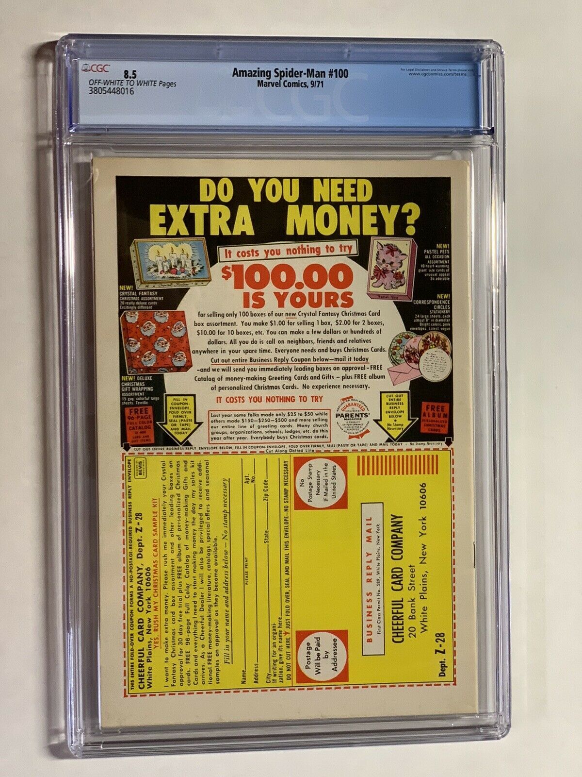 Amazing Spider-man 100 Cgc 8.5 Ow/w Pages. Shipped with USPS Priority Mail. Here at Cloud 9 Comics and More, the original since 2004, we strive for 5 stars positive feedback for every transaction. If we have not me ... Read More