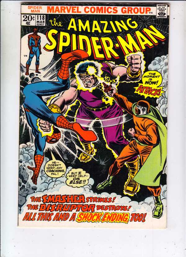 Amazing Spider-Man #118 - "The Smasher Strikes! the Disruptor Destroys!" APPEARANCE - The Disruptor 1ST APPEARANCE - The Destroyer! Wow! This book has excellent eye-appeal on this all-time-classic 1st Disrupter an ... Read More