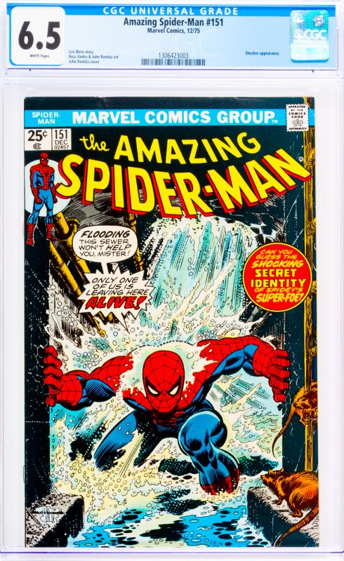 Amazing Spider-Man #151 CGC Graded 6.5 Shocker appearance.