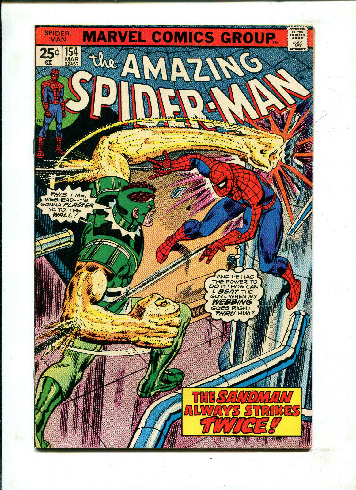 AMAZING SPIDER-MAN #154 (7.0) SANDMAN ALWAYS STRIKES TWICE! 1976!