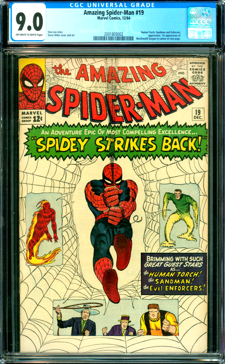 Amazing Spider-Man #19 CGC Graded 9.0 Human Torch, Sandman and Enforcers appearance. 1st appearance of MacDonald Garganin in cameo