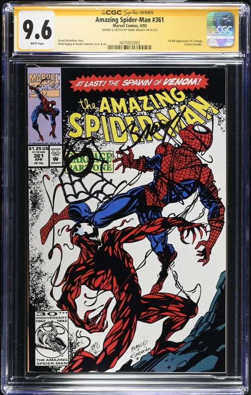 Amazing Spider-Man (1992) # 361 (CGC 9.6 SS) Signed Sketch Mark Bagley * 1st