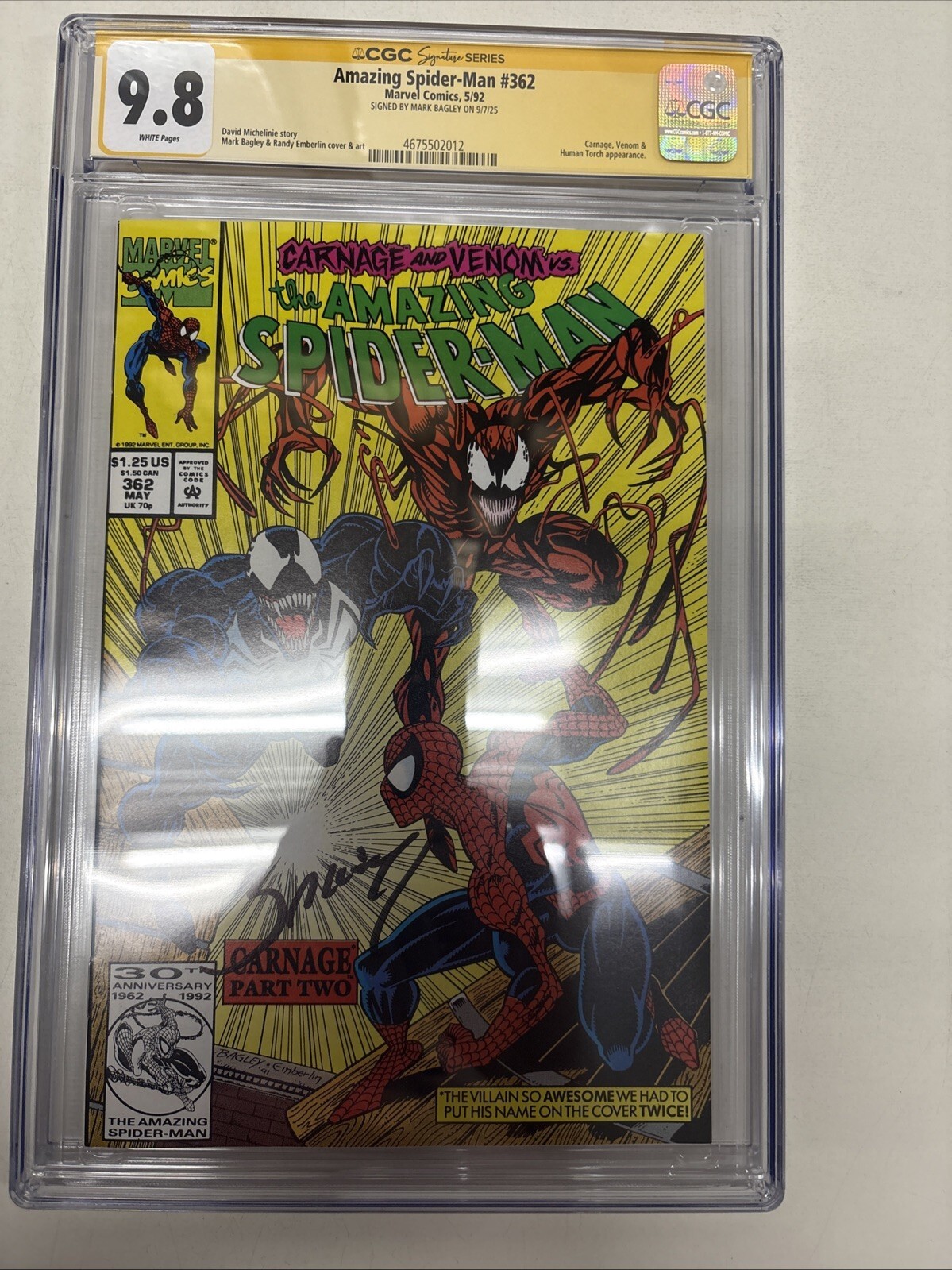 Amazing Spider-Man (1992) # 362 (CGC 9.8 SS) Signed Mark Bagley * Carnage