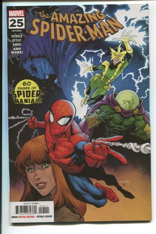 Grade: 9.2 Near Mint-Amazing spider-man (2018 marvel) #25 cvr a ryan ottley item number: cxwh-r16488 year two of nick spencer, ryan ottley and humberto ramos' run on asm begins here! In the giant-sized main story, spider-man and mary jane find themselves in an incredibly tough situation, thanks to electro. Can spidey save mj? Can mj save spidey? What is mysterio cooking, and what does it have to do with the bandaged villain who has been on the periphery since #1?! All this, plus a story by dan hipp (teen titans go! Art director), internet sensation keaton patti and more!