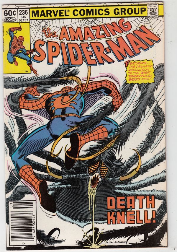 Amazing Spider-Man #236 - Death Knell! APPEARANCE - Will-O-The-Wisp 1ST APPEARANCE - New Tarantula Part II Wow! This book has nice eye-appeal on this all-time-classic bright Tarntuala cover with at tip-bend at the ... Read More