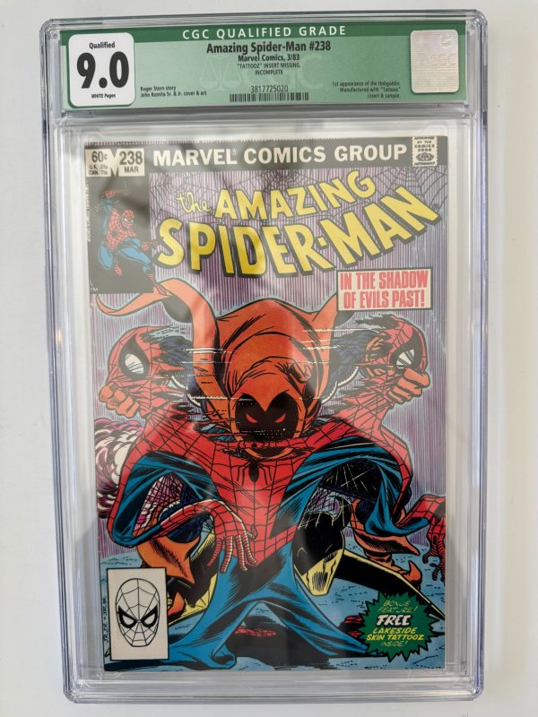 Amazing Spider-Man #238 CGC 9.0 - 1st App. Hobgoblin, Marvel Comics (1983)The pictures above represent the exact item you are going to receive. They are NOT stock pictures. There are no missing pages, rips or cutouts.I am not a professional grader, so please use the pictures above to determine the grade for yourself. I have tried to grade as accurately as possible.