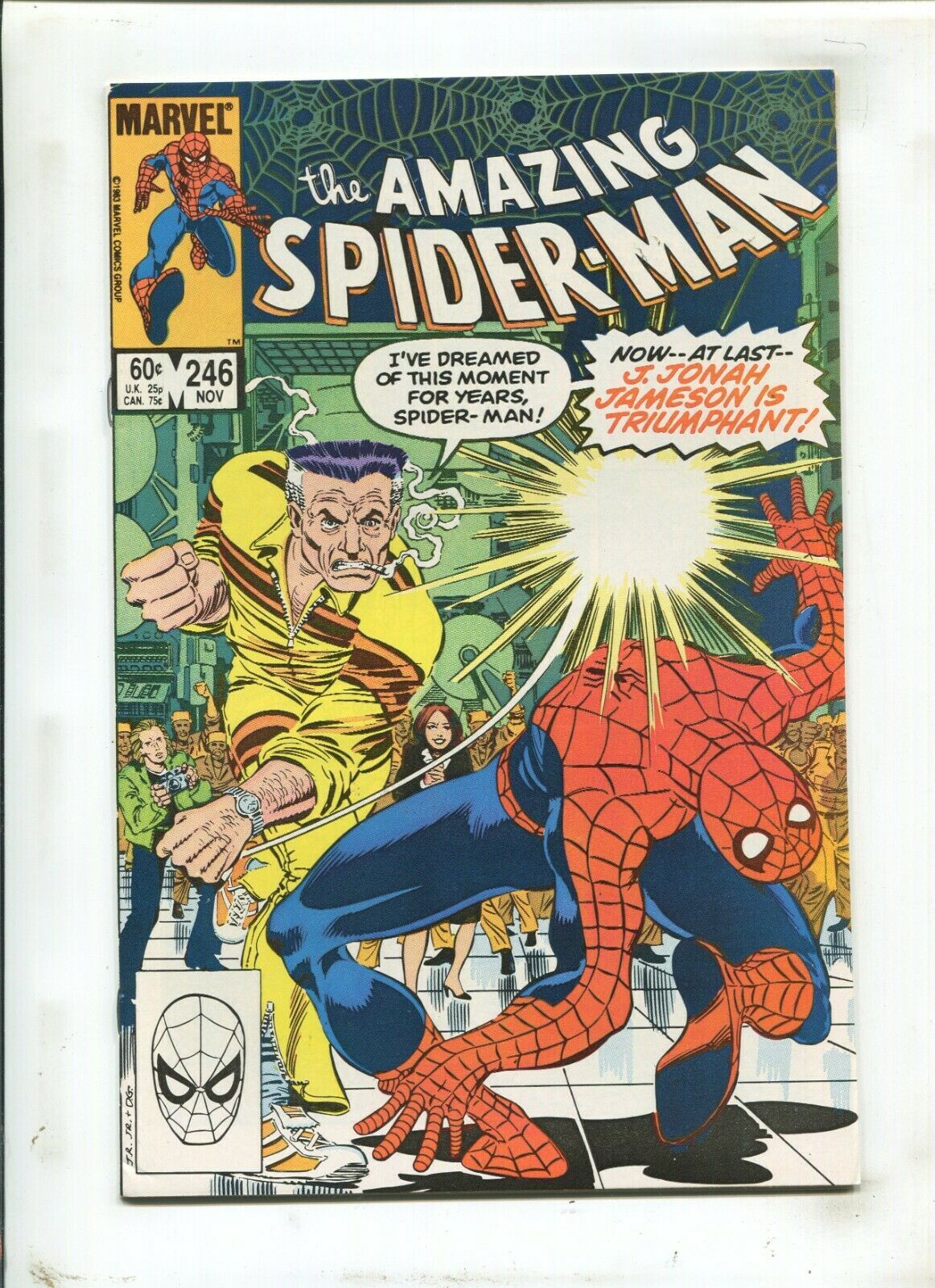 Grade: 9.2 Near Mint-Amazing Spider-Man #246 - J. J. Jameson Appearance - Direct Edition (9.2OB) 1983Size: 7" x 10"This item was uploaded by ___LM___.WE COMBINE SHIPPING!!! Either wait for us to send you an invoice after you commit to buy or, if it makes you pay right away, message us back and we'll refund the excess charge. Buy as many single comic books as you want for one low flat shipping rate in the United States! International will be charged exact according to size and weight. If you have any specific questions or requests, please ask us prior to ordering and we'll get back to you as soon as we can. If there are any problems with your order whatsoever, please message us before leaving feedback and we'll be happy to work with you to fix the situation! We ship worldwide, combine purchases, and charge exact shipping. The price may vary based on size, weight, and location. If you are automatically overcharged for shipping, message us and we'll be happy to revise the invoice or refund you the excess amount. If you have any questions regarding shipping, please message us. International Buyers - Please Note: Import duties, taxes, and charges are not included in the item price or shipping cost. These charges are the buyer's responsibility. Please check with your country's customs office to determine what these additional costs will be prior to bidding or buying. Payment can be made by PayPal and credit cards directly. 120,000+ items in total in my Hip store! Frequently Asked Questions: When are your operation hours?Our in office hours are Monday - Friday, 11 am - 8 pm. We are not open on weekends, so if you send us a request on Friday evening we won't get back to you until Monday afternoon. Please don't take it as us ignoring you! We will work on your request Monday and get back to you as soon as we can. Also, if you order from us on a Friday evening or Saturday morning we won't start processing your order until we open on Monday. That means on Monday it will be pulled and prepped for shipping, then picked up by the postman on Tuesday morning.When will you ship my item? The tracking hasn't moved.We realize you're eager to get your item, so if the tracking hasn't moved in a few days please don't be concerned. We give the postman a lot of packages daily, sometimes as many as 100, so he does not scan each item for us upon pickup as he says it would be too time consuming for him to do so. If you get a tracking number from us, that almost always means your item was picked up by the postman the next business day. The USPS is also imperfect. There are times when the tracking won't even show movement until it's in your area's regional distribution center. This is normal in our experience. Is the item pictured the exact one for sale?Yes! We don't use stock images and go through great lengths to scan or photograph everything we list. The item pictured is exactly what you should receive UNLESS it is a fixed price listing with multiple items available. Can you issue a COA? We can, upon request. Please make sure you leave us a note while checking out and shoot us a message immediately after requesting one, just to be sure. How do you grade?Grading is very subjective, but we are professionals with decades of grading experience between us who try the best we can to accurately describe the condition of the items we list. Anthony is an Overstreet Comic Book Price Guide Advisor Please see the grading chart below for a breakdown of how we grade: NOTE: We don't grade any raw books higher than 9.2, as once you go higher than that grading gets really subjective. If you buy a NM book from us, it may very well be higher than 9.2 but we play it safe and grade conservatively. 9.2 NM Near Mint 9.0 VF/NM Very Fine/Near Mint 8.5 VF+ Very Fine+ 8.0 VF Very Fine 7.5 VF- Very Fine- 7.0 FN/VF Fine/Very Fine 6.5 FN+ Fine+ 6.0 FN Fine 5.5 FN- Fine- 5.0 VG/FN Very Good/Fine 4.5 VG+ Very Good+ 4.0 VG Very Good 3.5 VG- Very Good- 3.0 GD/VG Good/Very Good 2.5 GD+ Good+ 2.0 GD Good 1.8 GD- Good- 1.5 FR/GD Fair/Good 1.0 FR Fair 0.5 PR PoorHow do you ship comics? We ship in rigid cardboard mailers to protect your comic book from the worst the mail system has to offer. Price varies based on the number of books you purchase, but we try to keep costs as low as we can and charge exact shipping. If it looks unusually high to you please send us a message and we'll be happy to double check for you. Do you combine shipping? Yes, of like items. Such as: several comics can fit in one cardboard mailer, as can more than one record. Multiple art pages can easily be combined because they are light and thin. Where combined shipping differs is with size and weight. For instance, two statues require a much bigger box. Same goes for CGCs, as the package gets bigger and heavier as you go. Do you ship well? I've had some bad experiences... You needn't worry; we are professionals who value your business and want your item to arrive safely as much as you do. I have been collecting for over 30 years. I send out items the way I would like to receive them. The tracking says my item is "OUT FOR DELIVERY" in New Jersey. Why is that?If the tracking indicates that the item is "OUT FOR DELIVERY" in NJ don't worry, it's just what the tracking says when it's carried over from the postman to the sorting center. This is normal for our Post Office and will not impact you receiving your item in a timely matter.What is the difference between a RUN and a LOT?Good question. A RUN will be a collection of consecutive issues with no breaks in between them. If it says RUN of #s 1 - 50 you will receive 50 consecutive comics. A LOT will be within a certain range, so a 50pc LOT will not contain consecutive books.I changed my mind after successfully winning the auction or fixed price listing, will you cancel the transaction? Please only bid or hit BUY IT NOW if you are willing to follow through and pay for the item, we will not cancel the transaction. As a seller, Hip penaliz