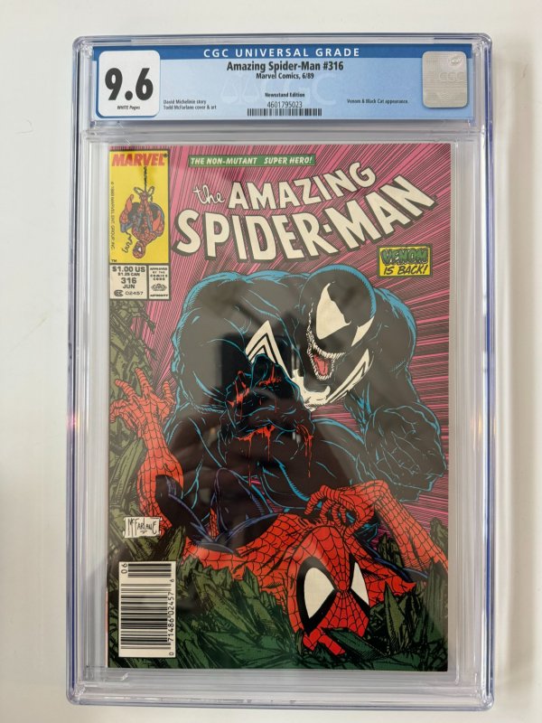 Amazing Spider-Man #316 CGC 9.6 Newsstand Marvel Comics (1989)The pictures above represent the exact item you are going to receive. They are NOT stock pictures. There are no missing pages, rips or cutouts.I am not a professional grader, so please use the pictures above to determine the grade for yourself. I have tried to grade as accurately as possible.