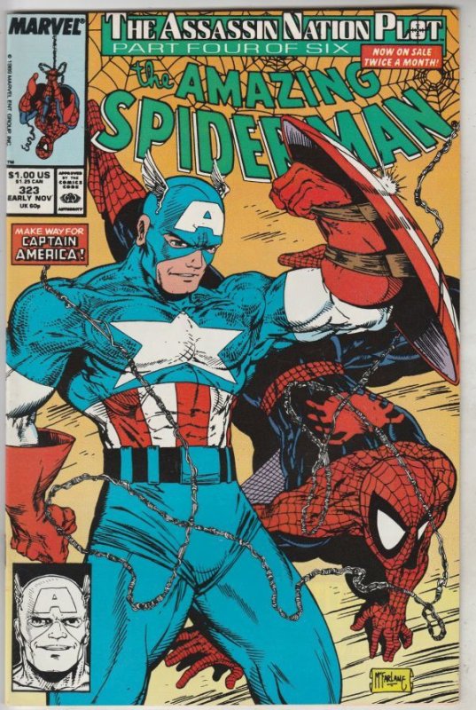 Amazing Spider-Man #323 - Assassination Nation Plot Part Four of Six; Make Way for Captain America! 1ST APPEARANCE - Solo COVER - Captain America! This book has deep rich color and excellent eye-appeal on this all ... Read More