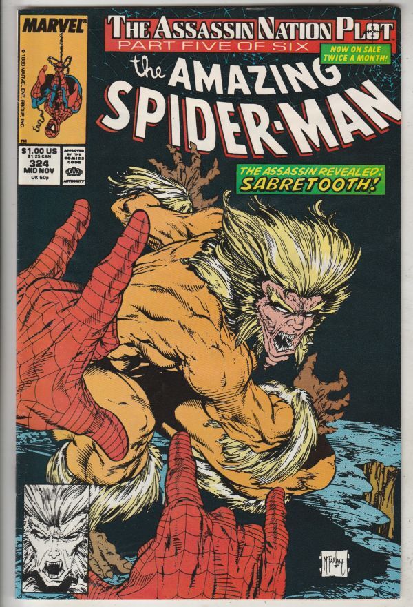 Amazing Spider-Man #324 - The Assassin Revealed: Sabretooth! APPEARANCE - Sabretooth COVER - McFarlane Sabretooth! Wow! This book has deep rich color and very nice eye-appeal on this all-time-classic McFarlane Spi ... Read More