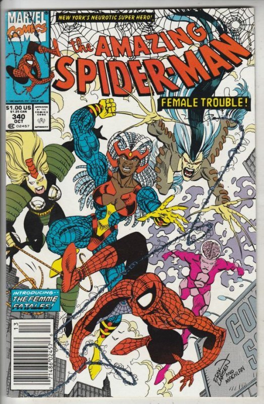 Amazing Spider-Man #340 - Female Trouble! ARTIST - Eric Larson! 1ST APPEARANCE - The Femme Fatales! Wow, wow, wow! This book has deep rich color and excellent eye-appeal on this all-time-classic Spider-Man vs. The ... Read More