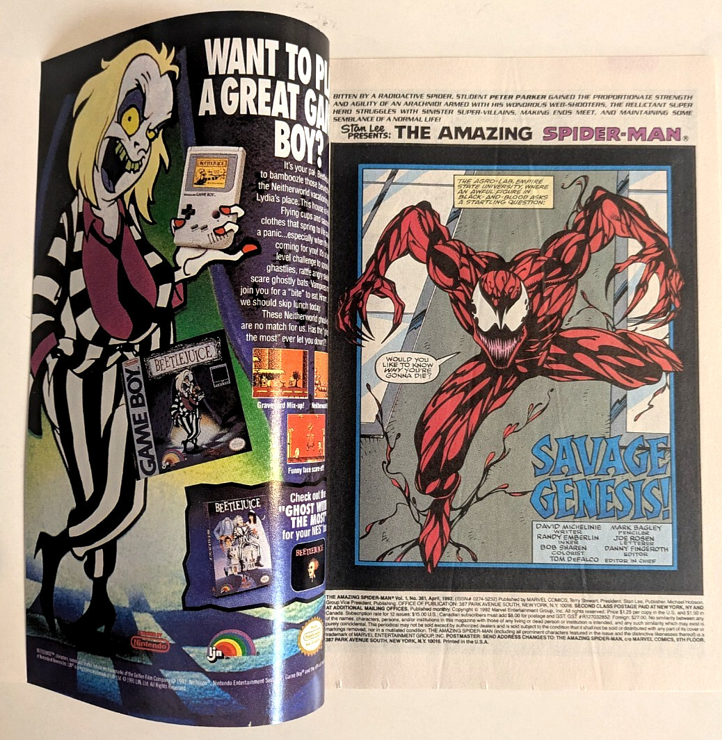Condition: Near MintAmazing Spider-Man 361nm INTRO CARNAGE!Check out our other 110+ Amazing Spider-Man Lots - All Available for combined shipping to save you $!Friendly Frank's was started in 1978 with a $40 investment. We started Friendly Frank's Distribution in 1982, the regional distributors Co-Op Jam in 1983, the Comic Book Legal Defense Fund in 1986, and B-Bop Comics in Kansas City in 1999. A member of the 100 Million Sold Club. Largest buyer and seller of old comics in Kansas and Missouri. Thank you!