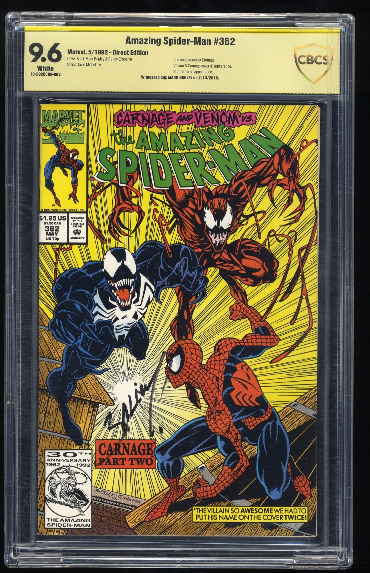 Amazing Spider-Man #362 CBCS NM+ 9.6 Verified Signed by Mark Bagley